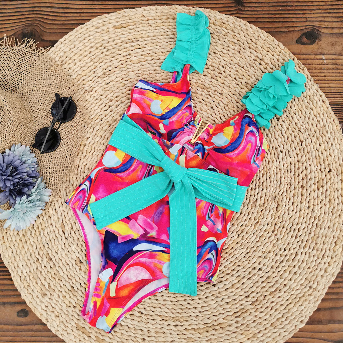 Oplev den eksklusive damesvømmebodysuit fra Stilla, der med sit legende blomsterdesign og elegante indviklede bælte ikke kun forbløffer i vandet, men også på stranden. Perfekt til en dag ved poolen eller en strandtur, fremhæver denne badedragt stilfuldt dine kurver.