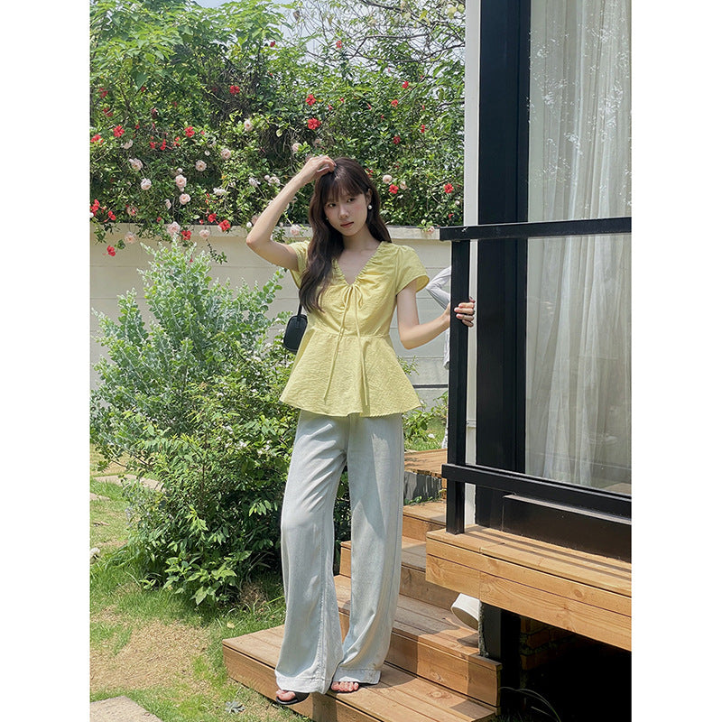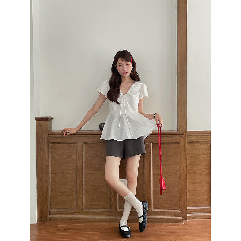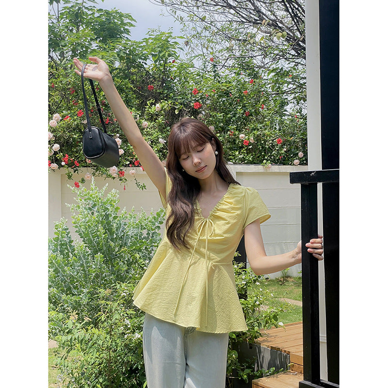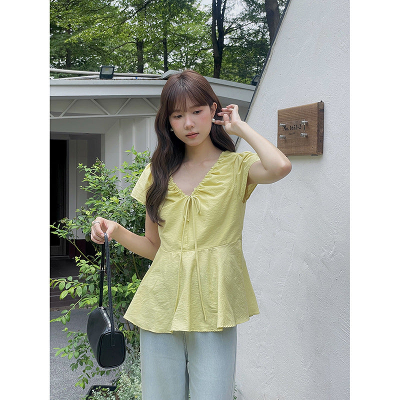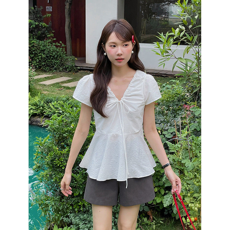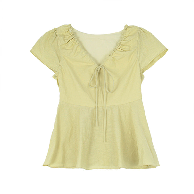 Opdag vores elegante og elastiske bluser, der både tilbyder komfort og stil. Med et romantisk flæsedesign og et praktisk dekorativt bindebånd er denne top perfekt til enhver lejlighed.