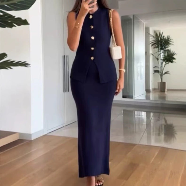 Opdag vores elegante 2-delte sæt, bestående af en ærmeløs top og en svævende nederdel, ideel til enhver lejlighed. Dette dameoutfit forener stil og komfort på en ideel måde.