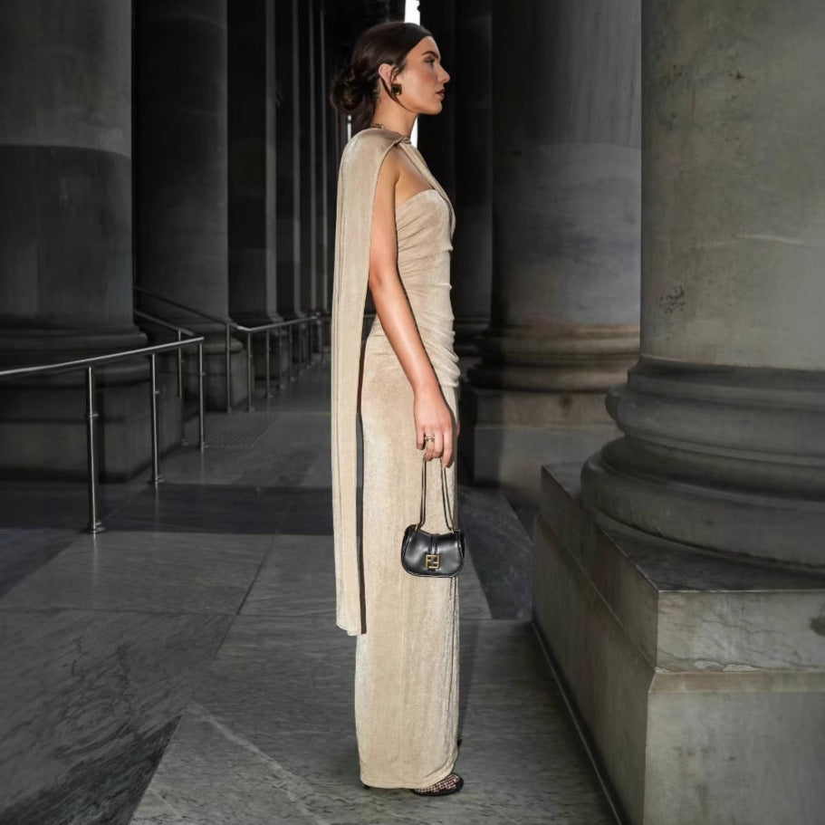 Opdag vores dames elegante aftenkjole med asymmetrisk design og raffinerede draperinger, der gør enhver optræden til noget særligt. Denne imponerende kjole overbeviser med sin usædvanlige snit og glamourøse udstråling.