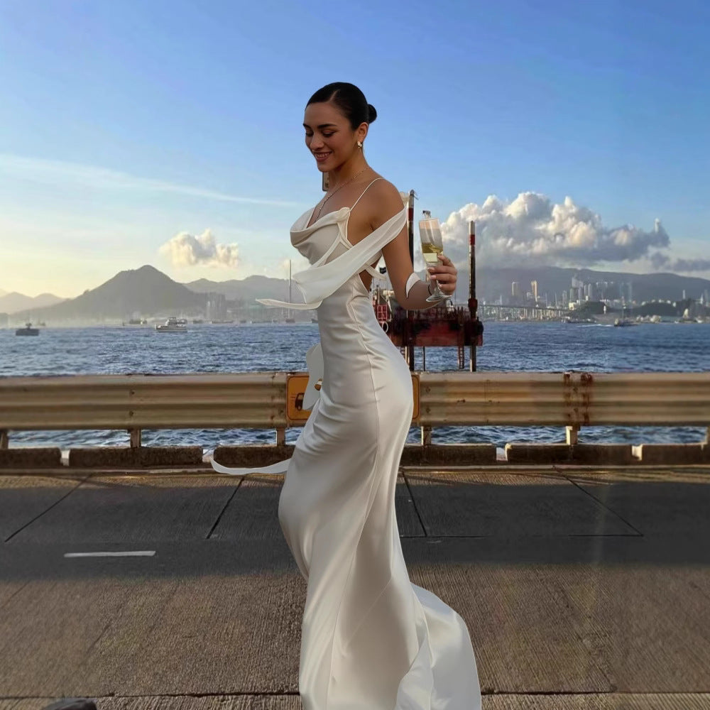 Opdag den fantastiske damesaftenkjole med asymmetrisk snit og fint satinfinish fra Stilla. Denne kjole kombinerer elegance med moderne designelementer og er ideel til særlige anledninger.