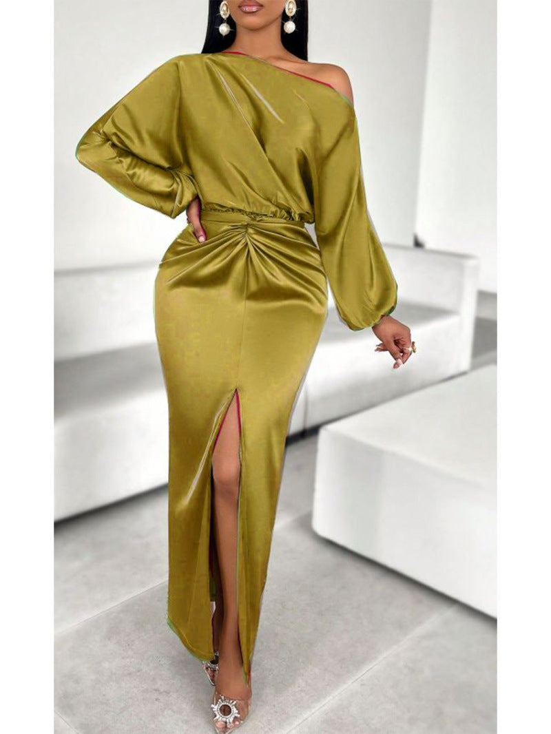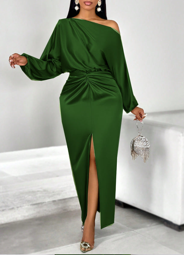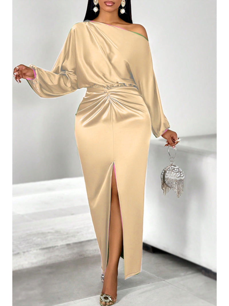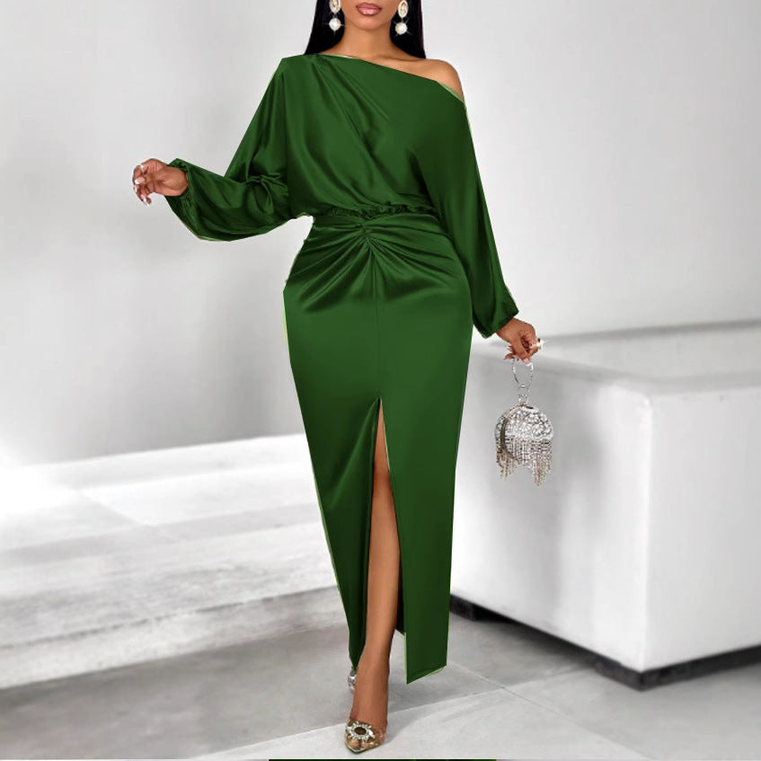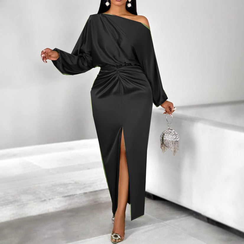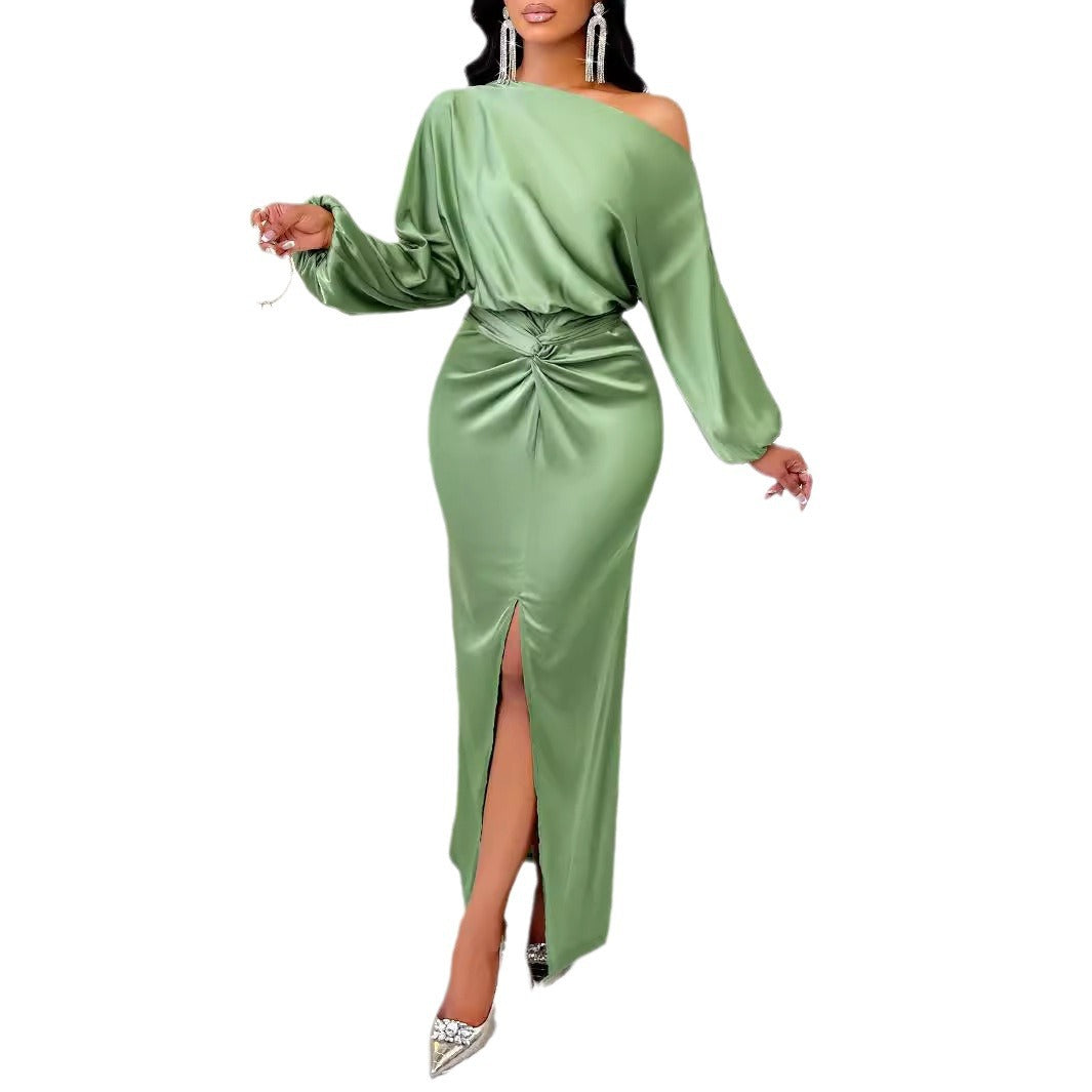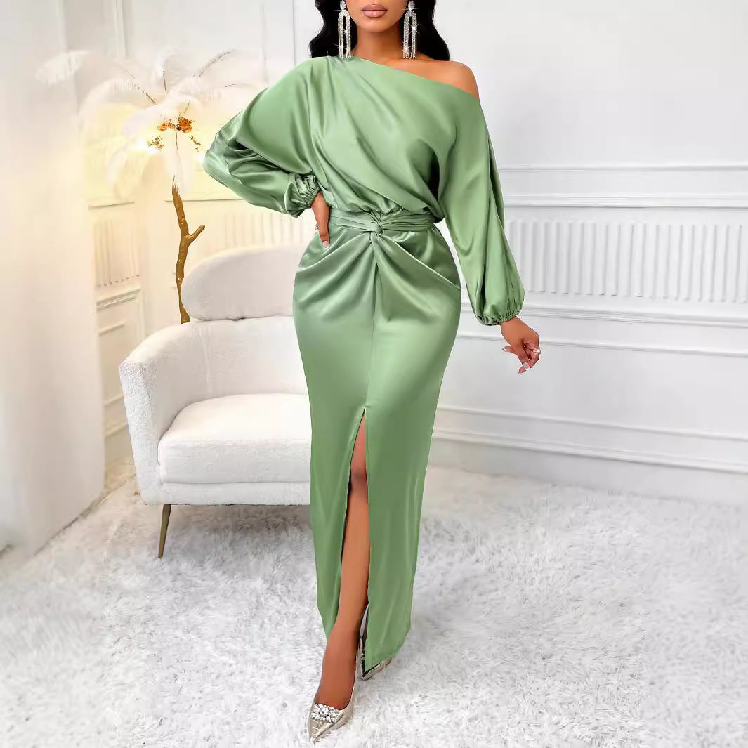 Opdag vores elegante aftenkjole, der er specielt designet til særlige anledninger. Denne kjole imponerer med sin asymmetriske udskæring og den tiltalende slids, der både giver et moderne og raffineret udseende.