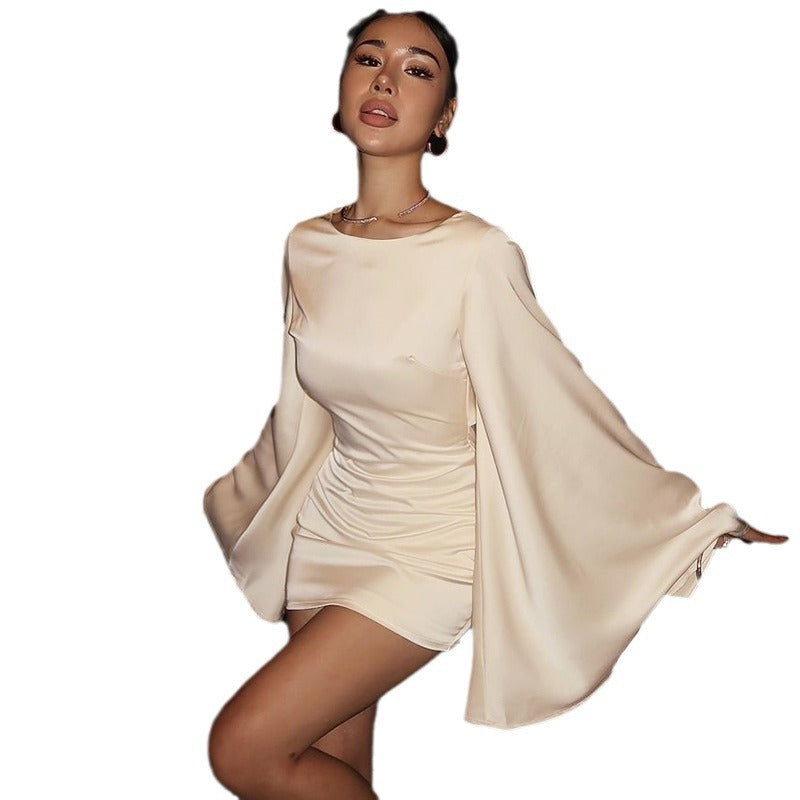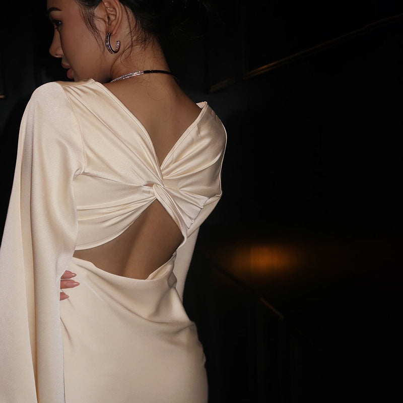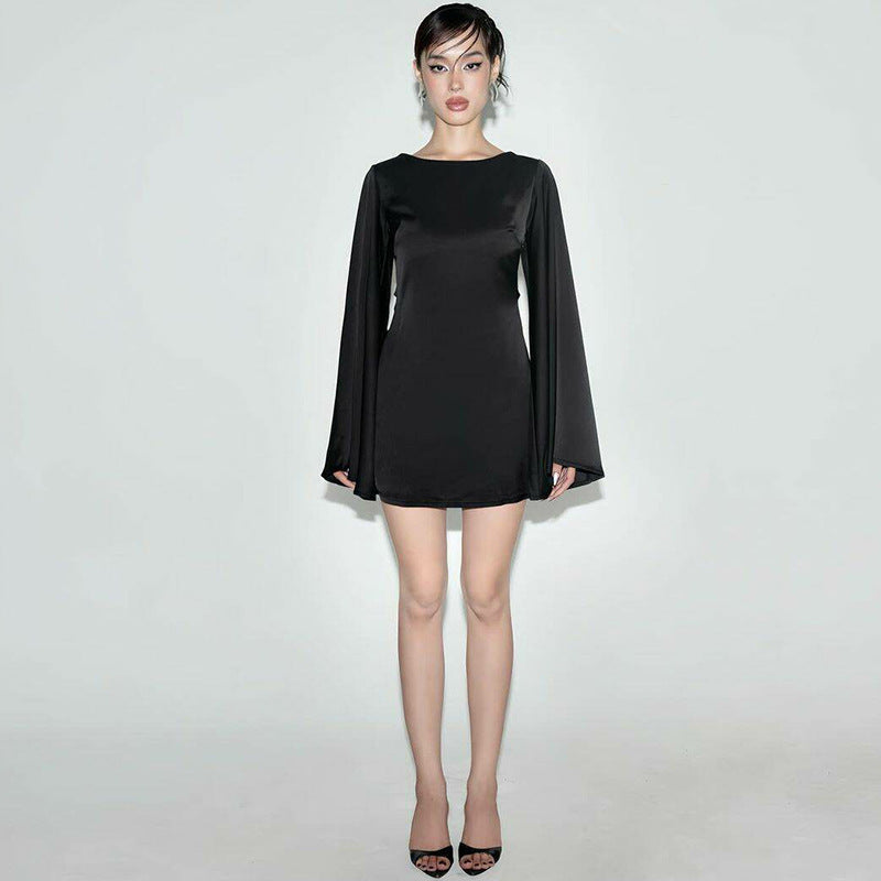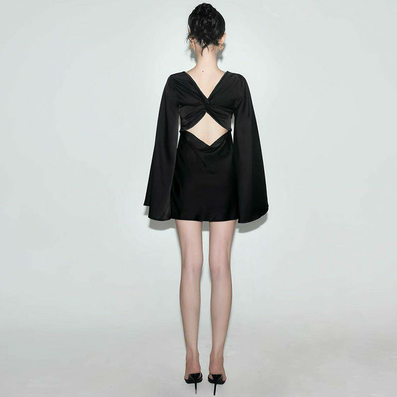 Dette udsøgte aftenkjole fra Stilla kombinerer stil og raffinement, ideel til særlige anledninger. Med sine dramatiske ærmeskæringer og det unikke rygdesign tiltrækker det beundrende blikke.
