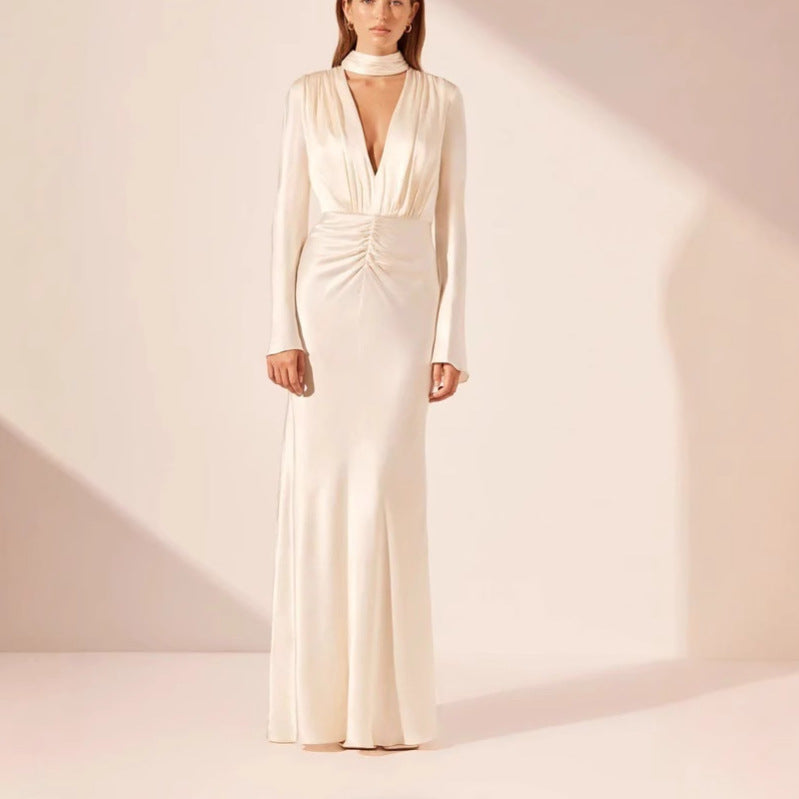Investér i denne tidløse aftenkjole, der både indkapsler elegance og stil, og som får dig til at se godt ud i enhver situation.