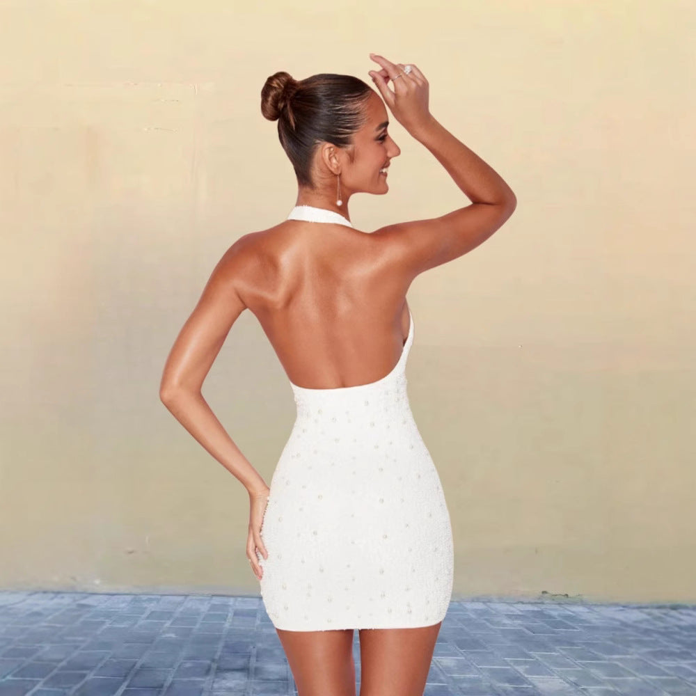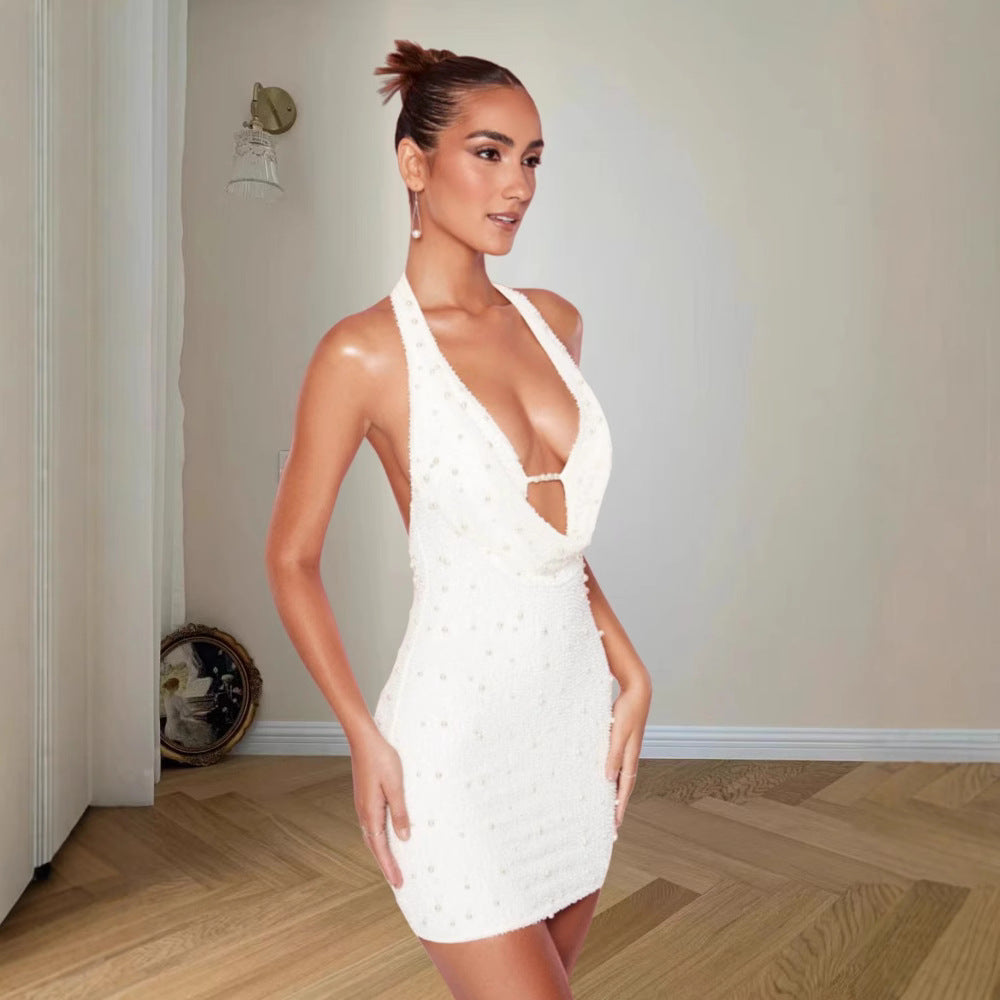 Opdag den elegante kvinde aftenkjole fra Stilla, som imponerer med sin dybe V-hals og funklende perler. Denne luksuriøse kjole er specielt designet til særlige anledninger og forener stil med komfort.