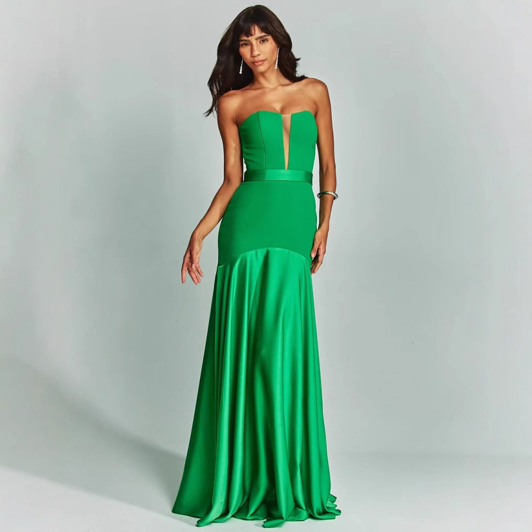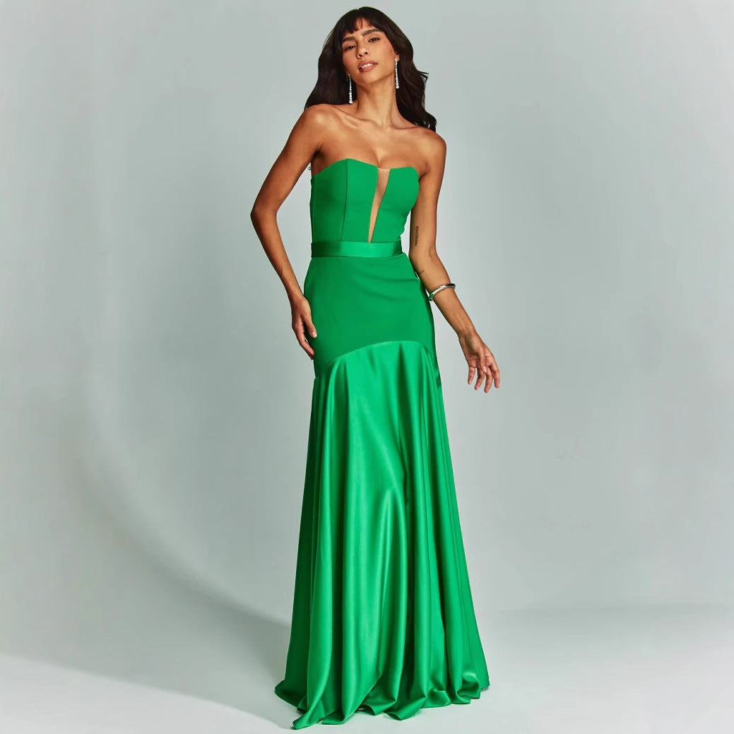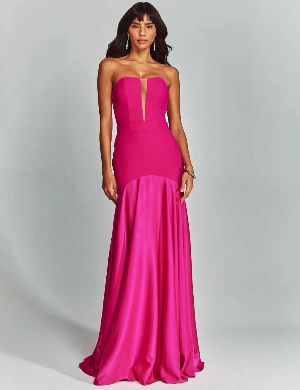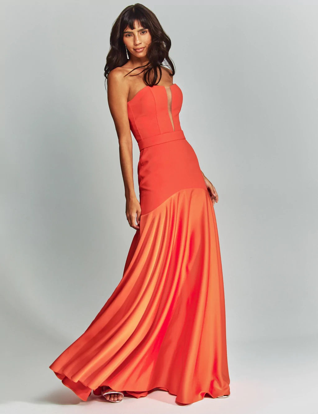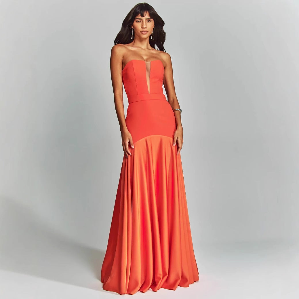 Opdag den kvindelige elegante aftenkjole fra Stilla, der perfekt fremhæver din feminine side. Denne betagende kjole kombinerer en raffineret, gennemsigtigudskæring med en smigrende flæse, der giver et tiltalende, flydende look.