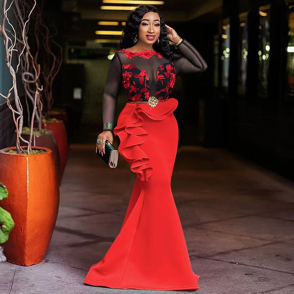 Oplev vores elegante aftenkjole med transparente ærmer og flæsedetaljer, der er specielt designet til uforglemmelige begivenheder. Denne kjole kombinerer tidløs elegance med moderne accenter for at give dig et unikt look.