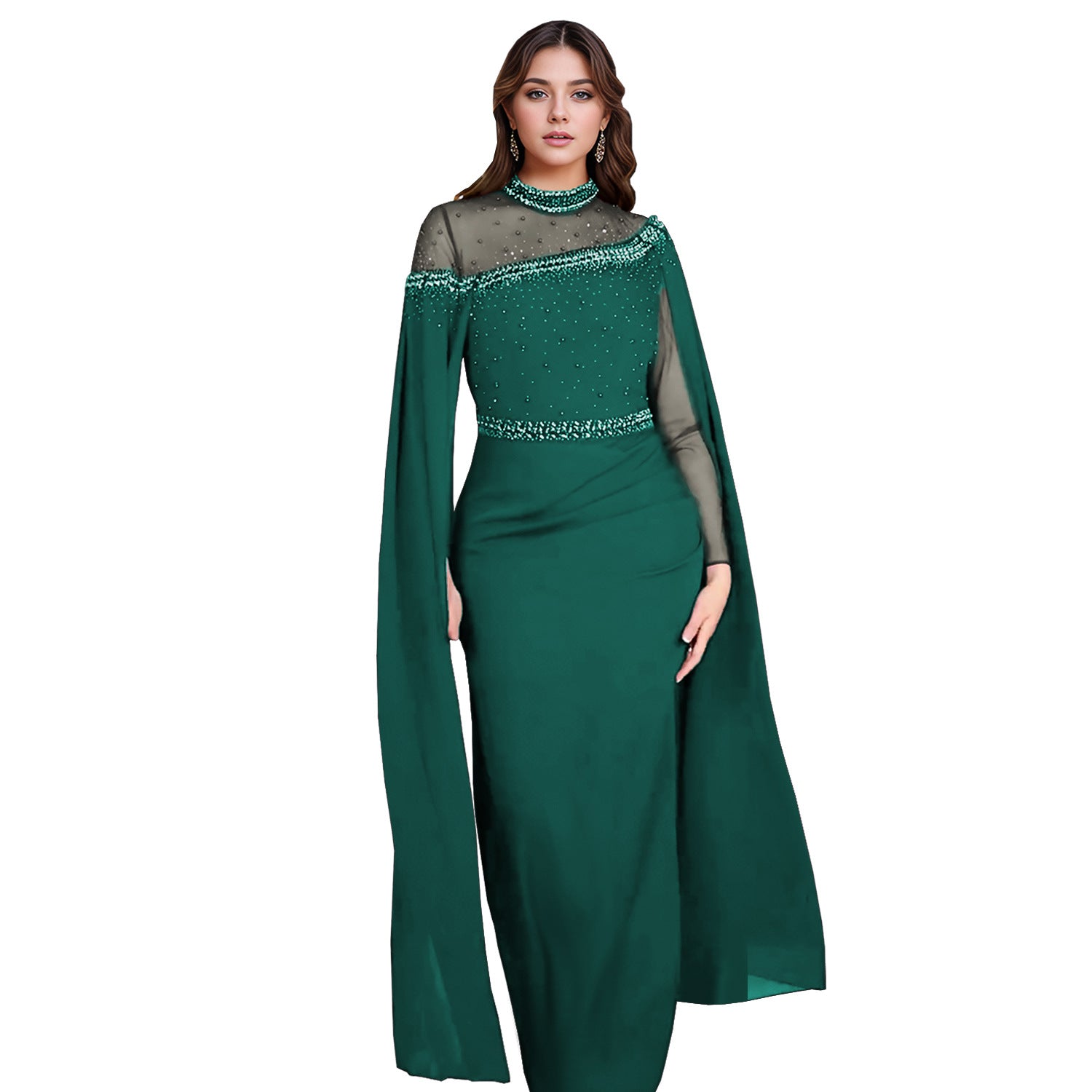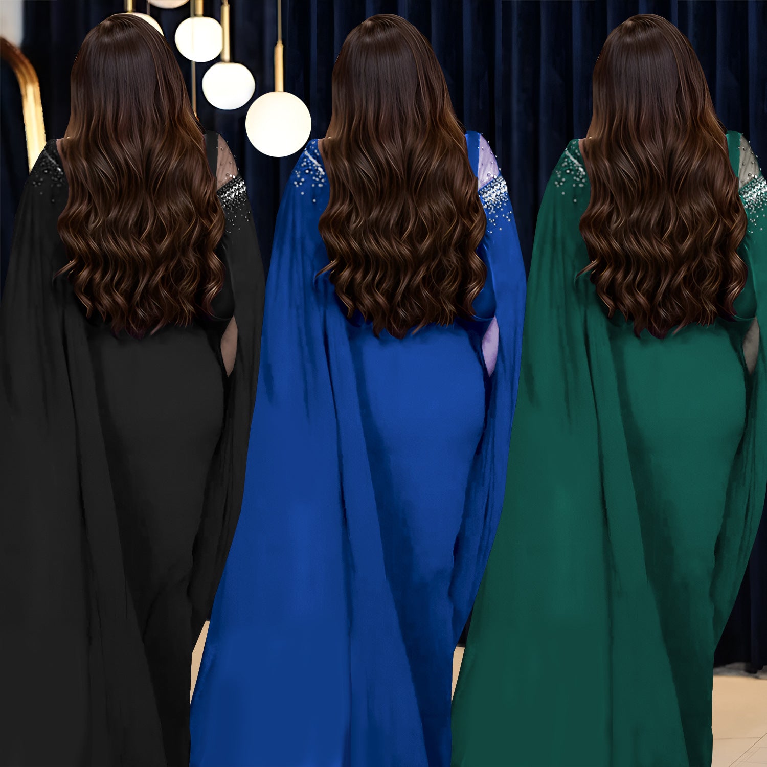 Opdag vores elegante aftenkjole, der er perfekt til særlige lejligheder. Denne kjole imponerer med sit farverige design og de glitrende rhinsten, der giver outfittet et glamorøst præg.