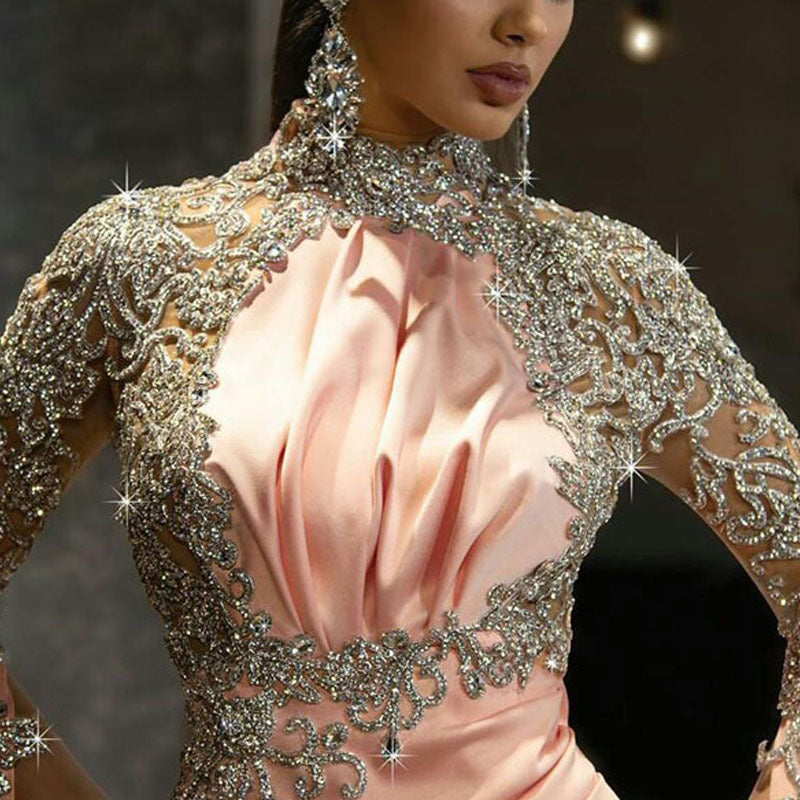 Opdag den eksklusive dames aftenkjole med drømmeagtige spidse accenter og flydende skørt, ideel til festlige lejligheder og glamourøse arrangementer.