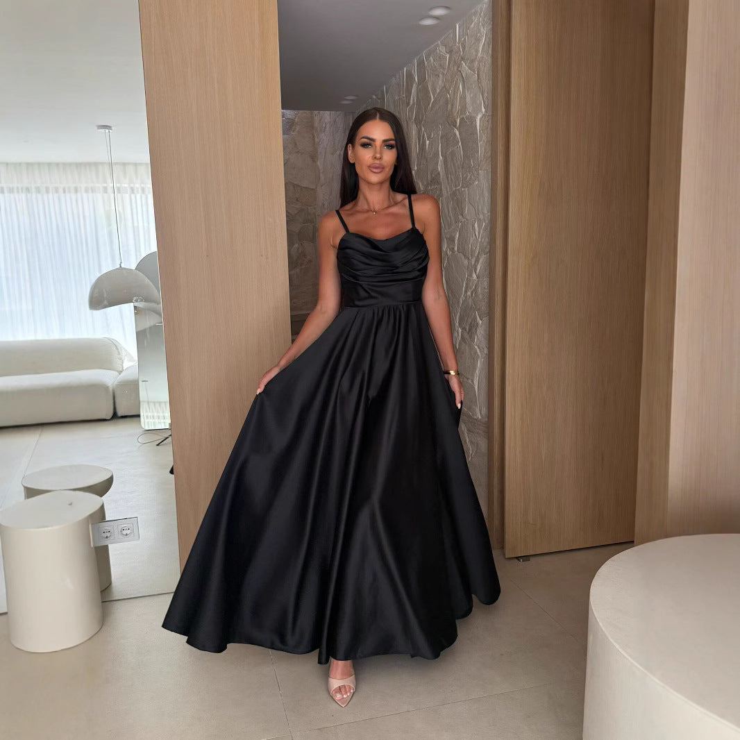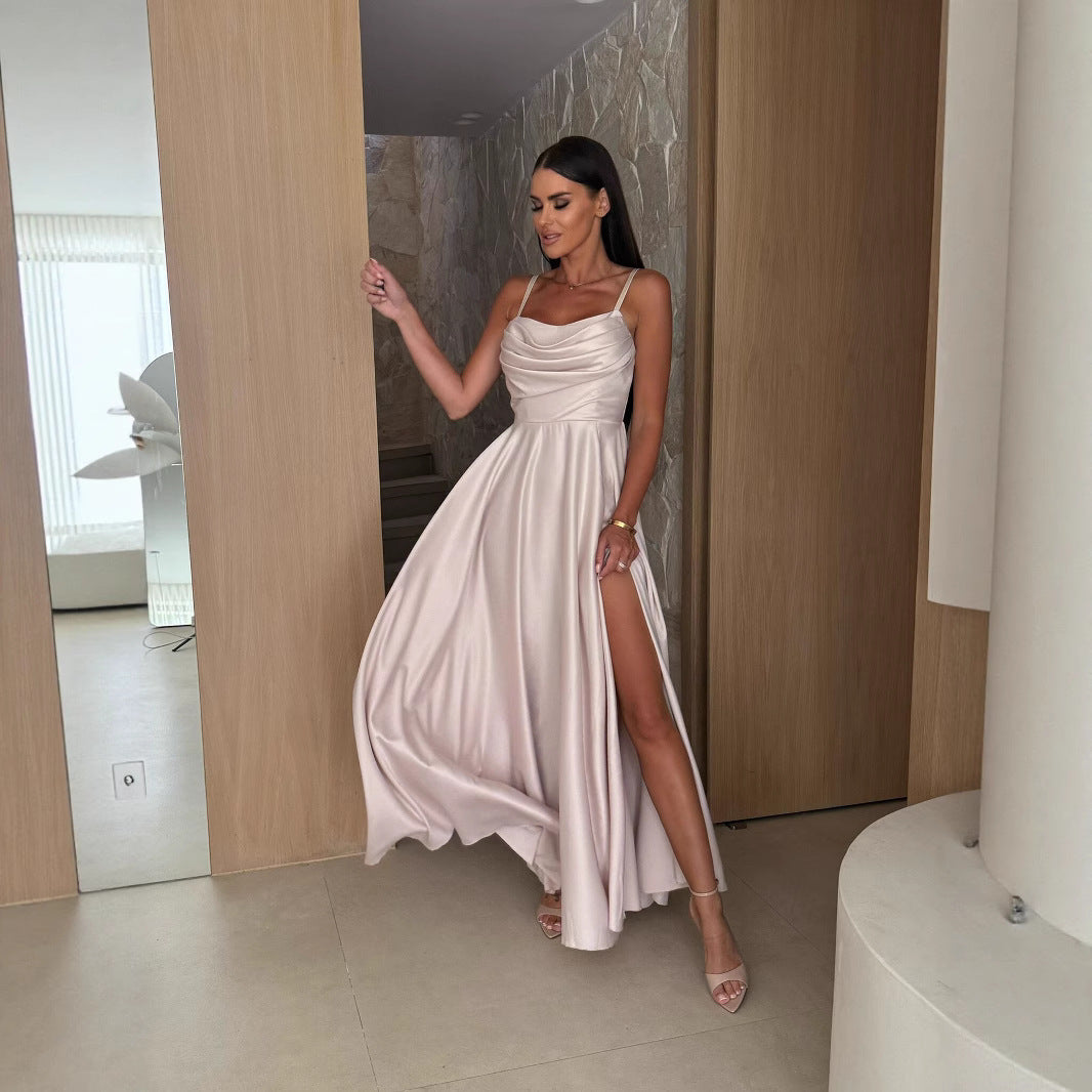 Oplev Stilla' elegante aftenkjole til damer, der med sin stilfulde hjerteudskæring og den flydende nederdel bliver blikfang ved enhver fejring. Denne kjole forener raffinement og komfort og er perfekt til særlige anledninger som bryllupper, balarrangementer eller elegante middage.
