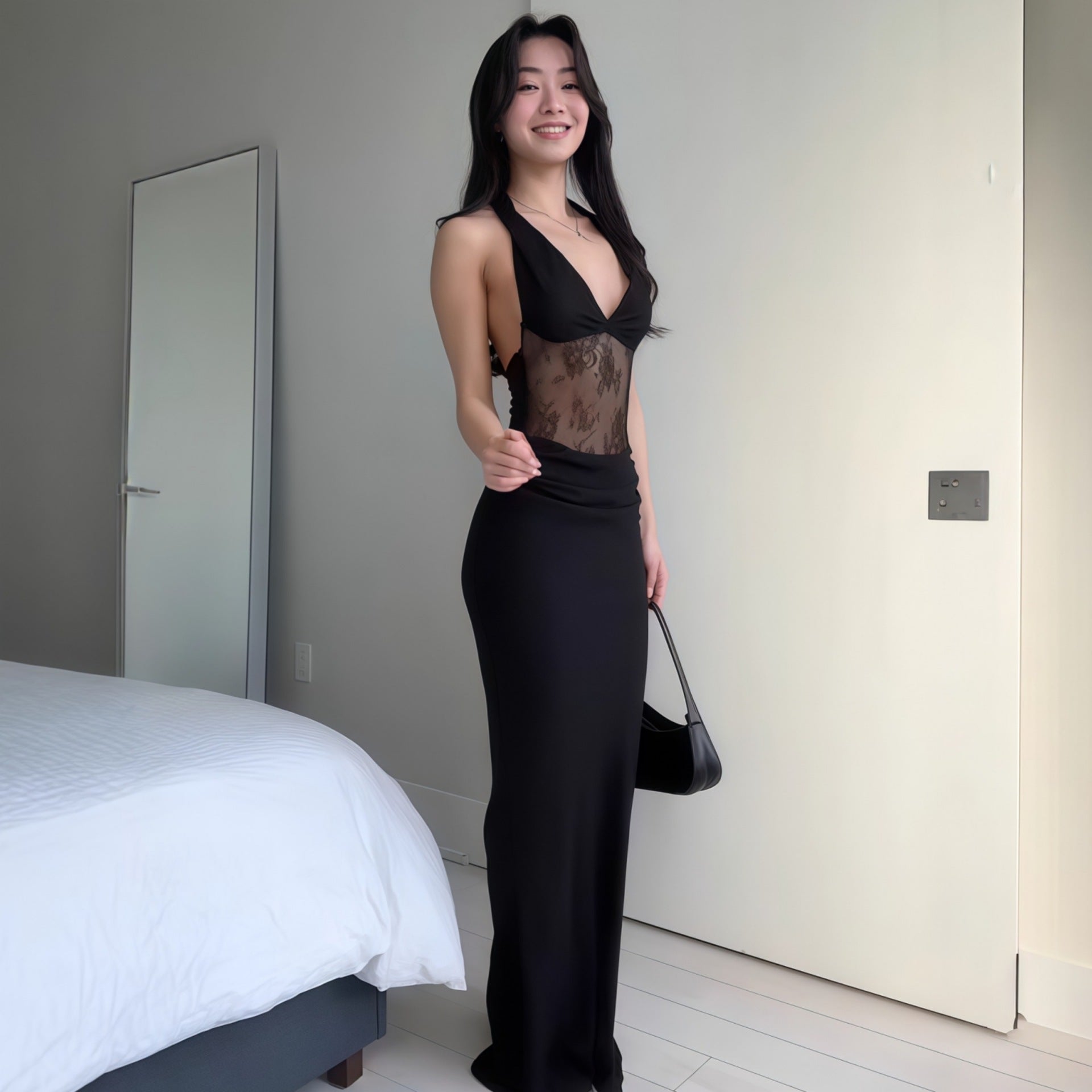Udforsk vores fantastiske elegante aftenkjole med spidstop, der tilbyder den perfekte kombination af elegance og komfort. Denne kjole er ideel til særlige anledninger som bryllupper, gallaer eller formelle begivenheder.