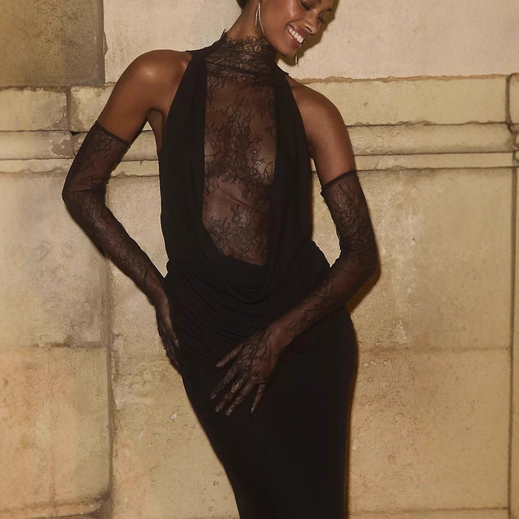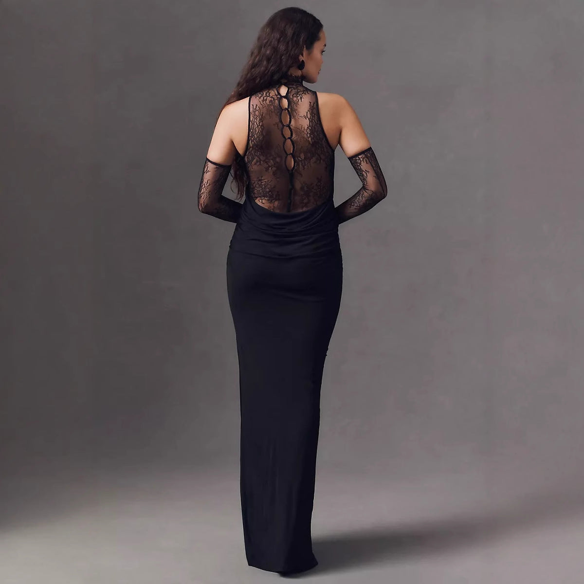 Opdag det stilfulde dames elegante aftenkjole med spidsdetaljer fra Stilla, som er både raffineret og komfortabel. Denne kjole er den ideelle følgesvend til særlige lejligheder, bryllupper eller elegante aftenbegivenheder.