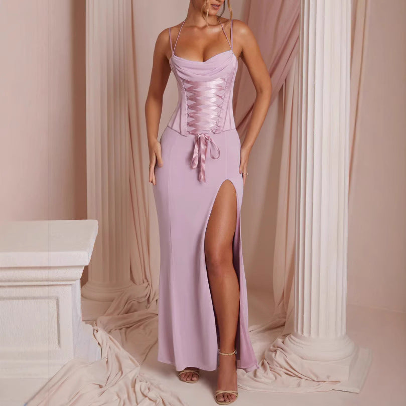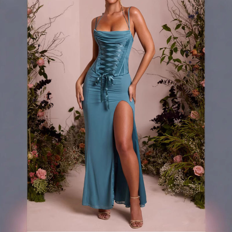 Opdag vores elegante aftenkjole, der både tilbyder stil og komfort. Med en raffineret talje og en forførende høj slids giver den et betagende look til særlige anledninger.