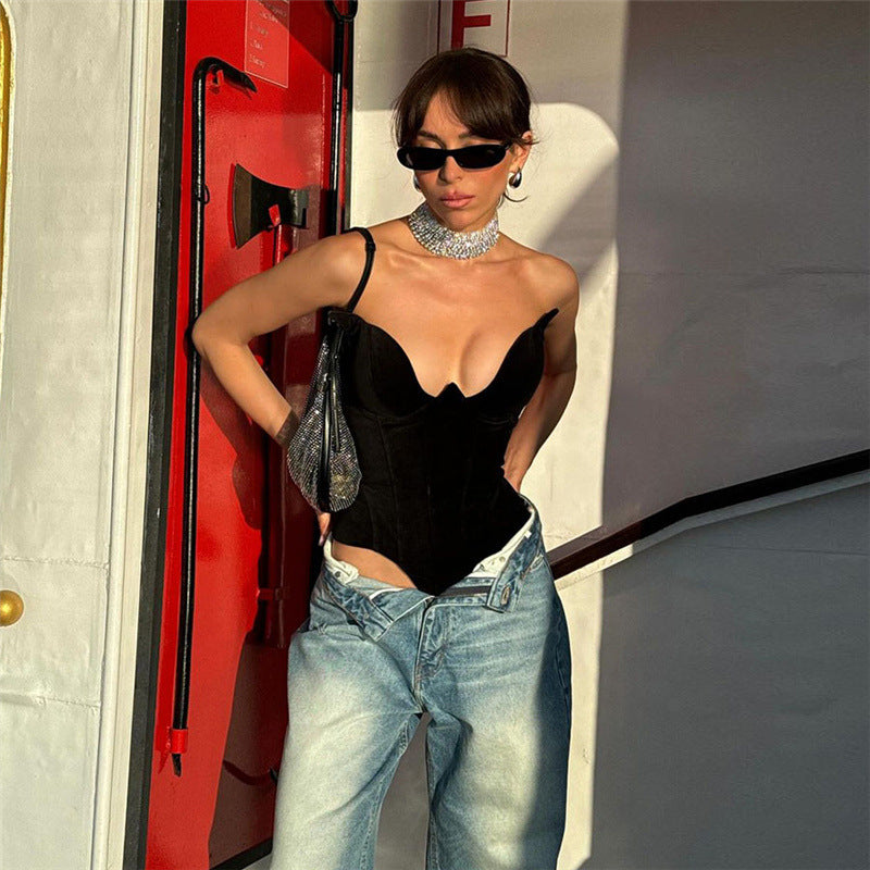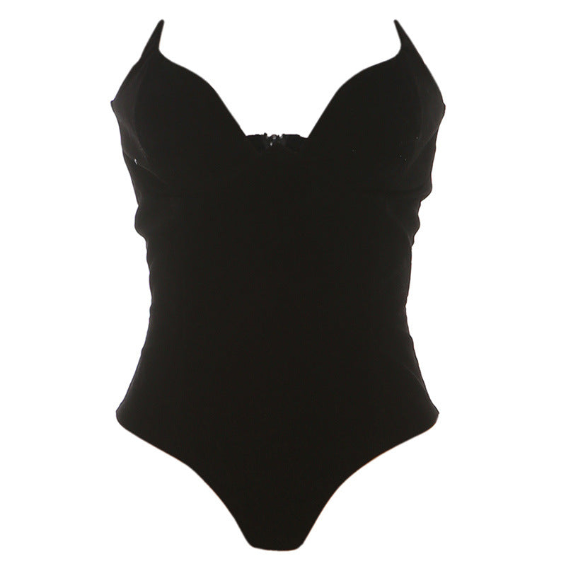 Oplev den tidløse charme ved vores elegante badedragt, der er specielt designet til den stilbevidste kvinde. Med en dyb V-udskæring og dekorative stropper giver den et forførende look ved stranden eller poolen.