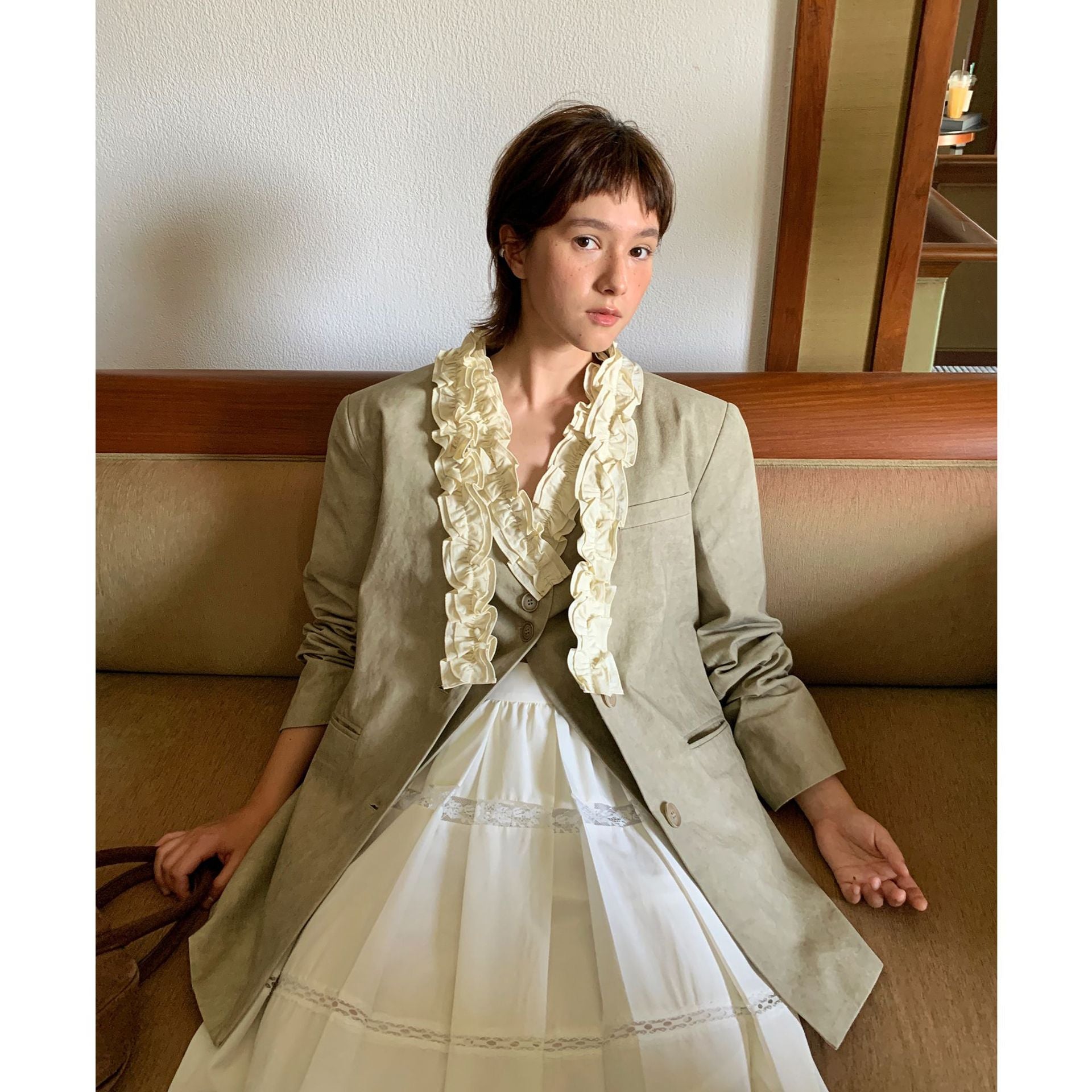 Opdag den elegante dames blazer med flæsekrave og fin tekstur fra Stilla – den perfekte beklædningsgenstand til enhver stilfuld garderobe. Denne blazer kombinerer chic elegance med moderne design, ideel til formelle anledninger eller mere afslappede udflugter.
