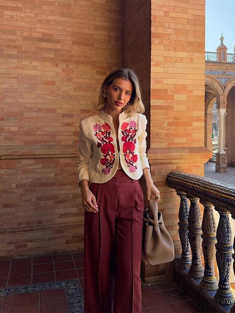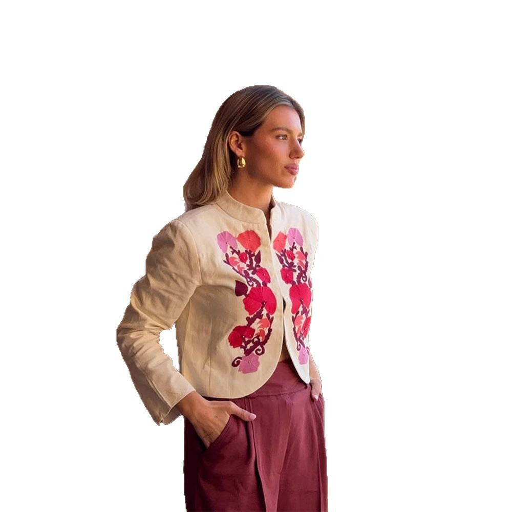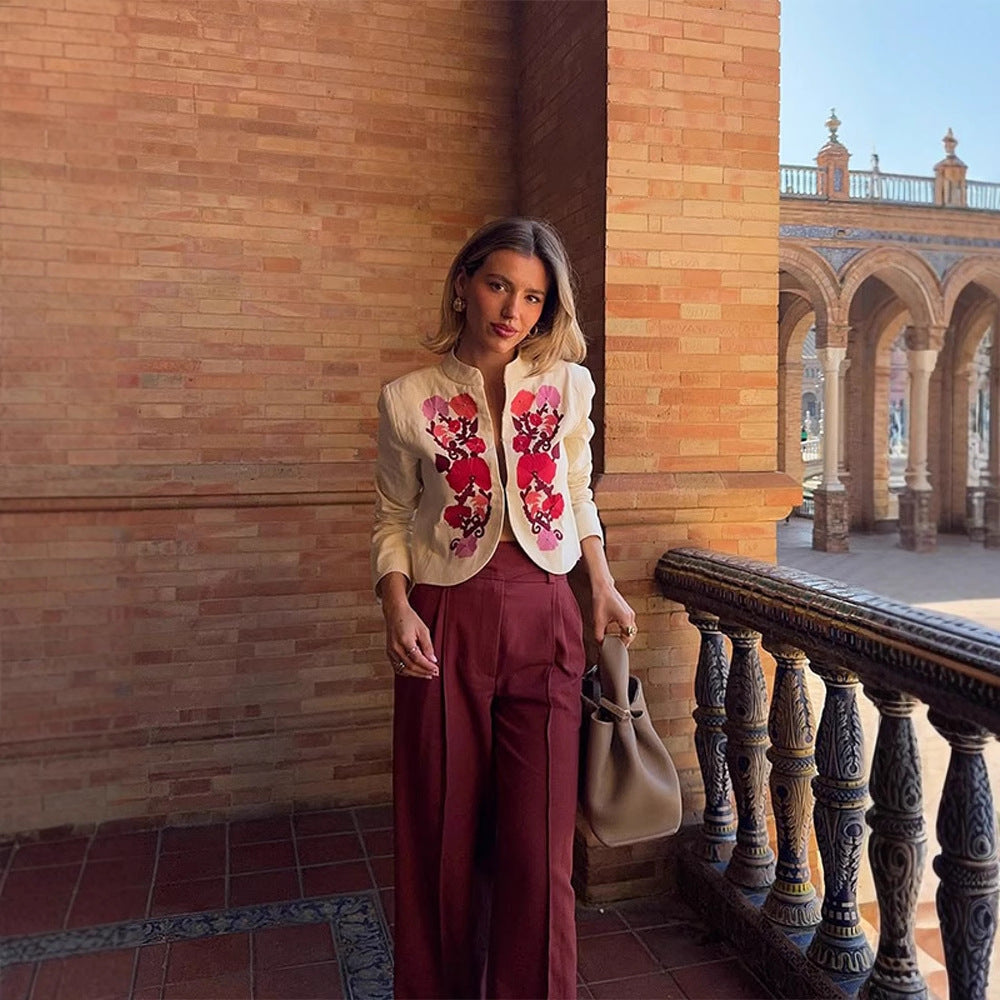 Denne fantastiske dames Blazerjakke fra Stilla kombinerer stilfuldt design med eksklusivt håndværk. Med sine kunstfærdige blomsterbroderier på forsiden tilbyder jakken ikke kun et moderigtigt præg, men også et strejf af elegance.