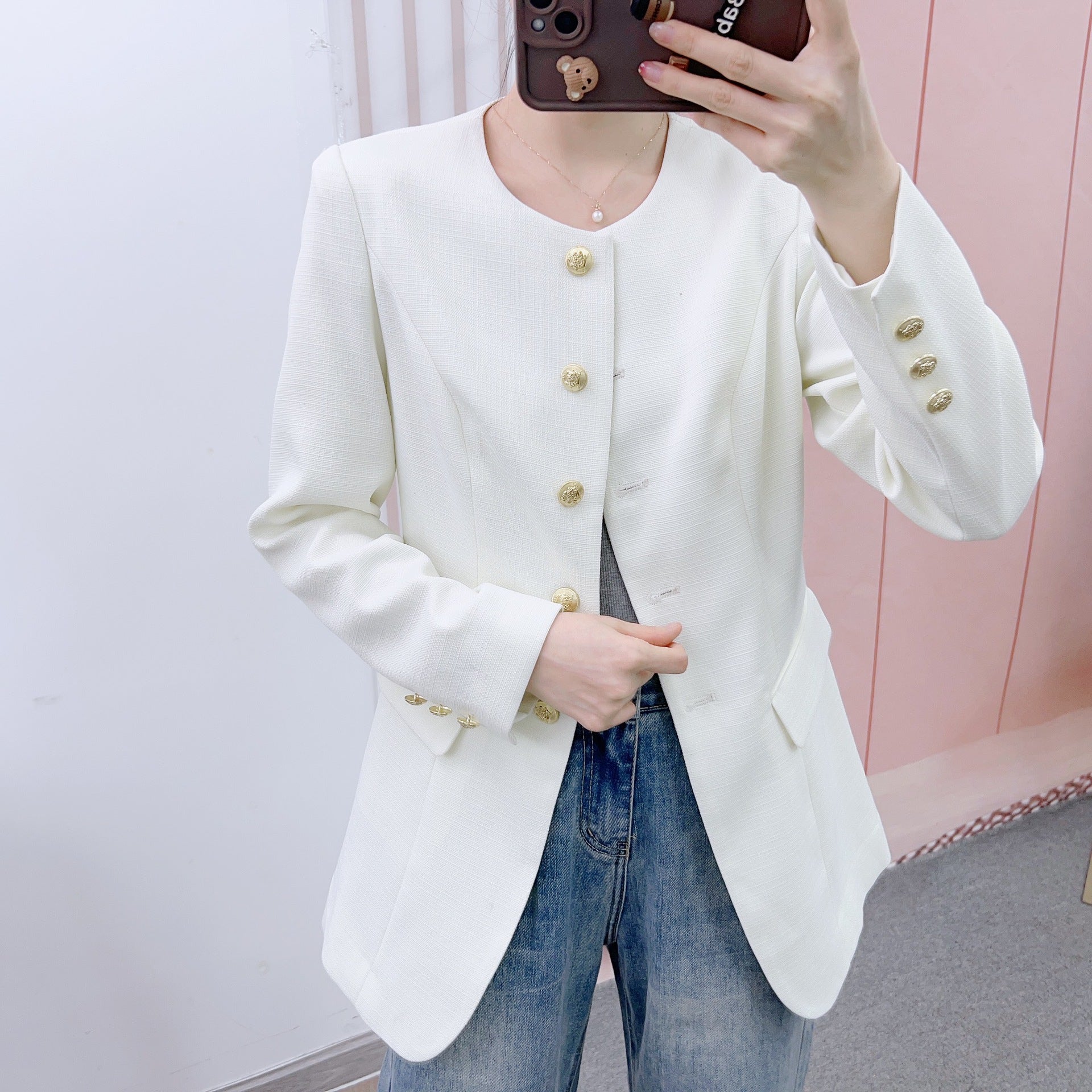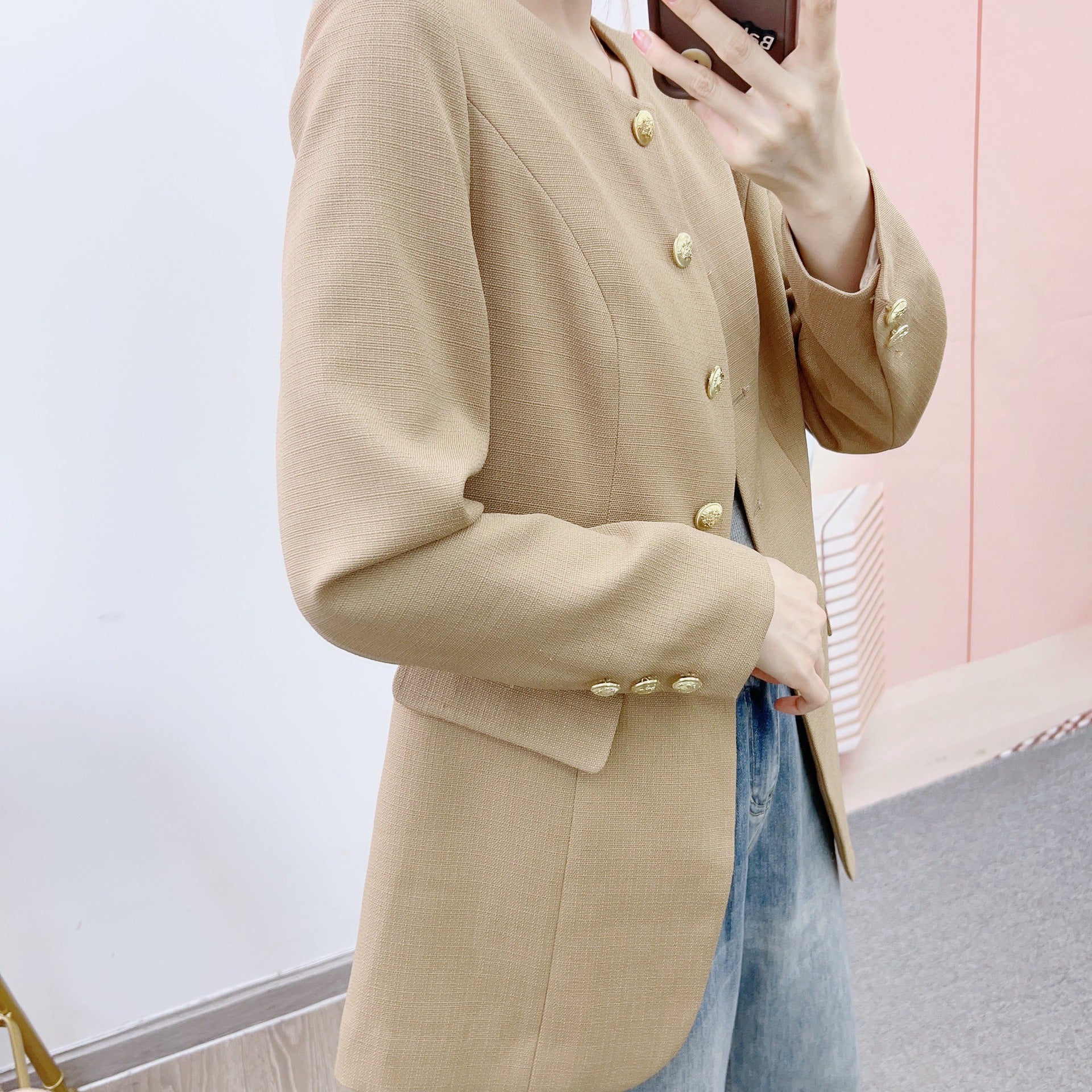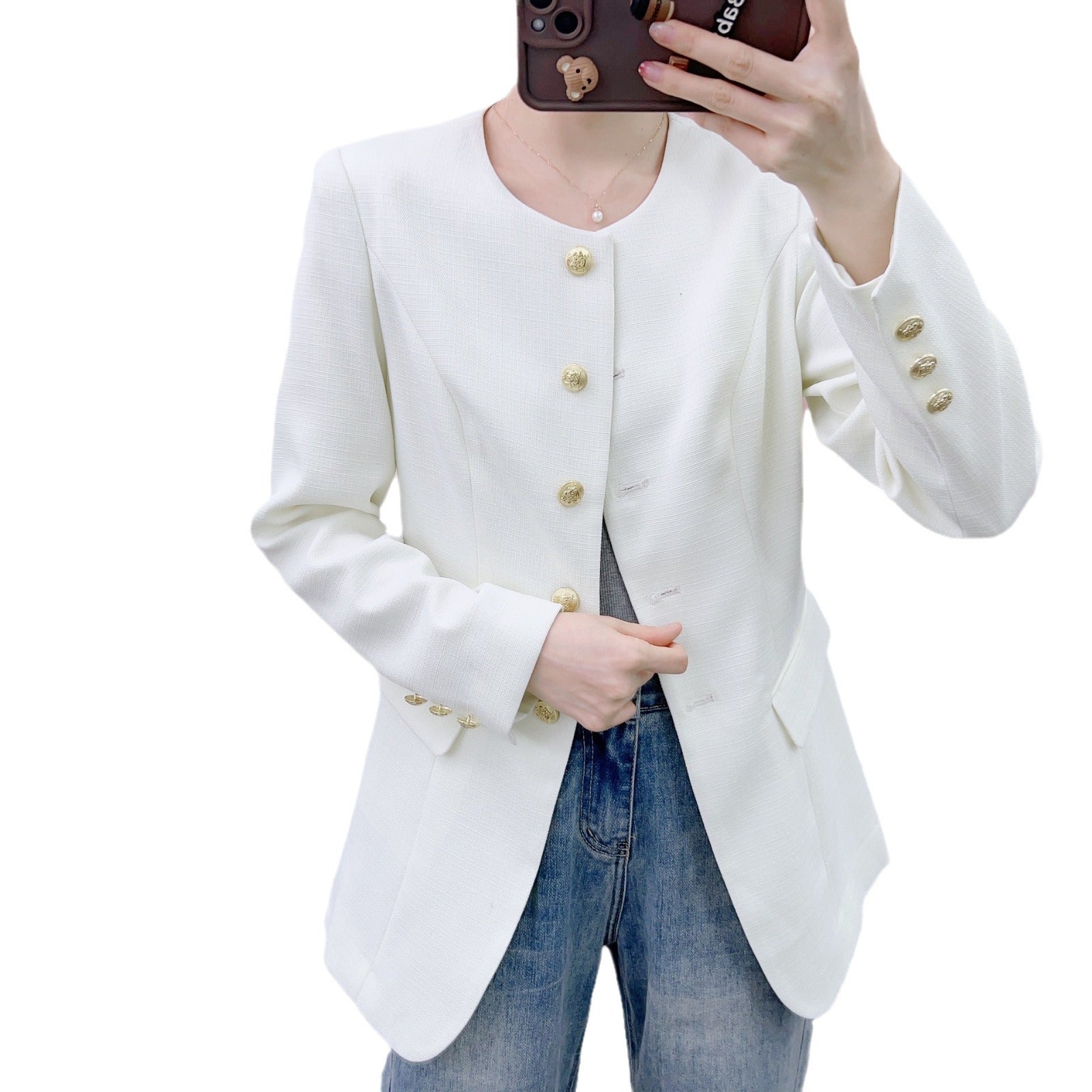 Oplev den tidløse Elegante Blazerjakke fra Stilla, et must-have for enhver modebevidst dame. Denne blazerjakke imponerer med sit strukturerede design og de gyldne knapdetaljer, der giver den et strejf af luksus. Perfekt til formelle anledninger eller som et stilfuldt supplement til hverdagen, sætter den altid fokus på dig.