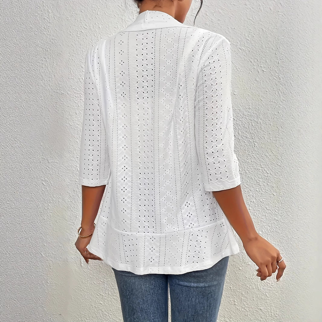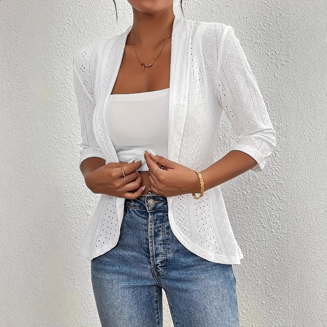 Denne elegante blazerjakke er den perfekte kombination af stil og komfort. Med et tiltalende hulmønster giver den ethvert outfit et raffineret præg.