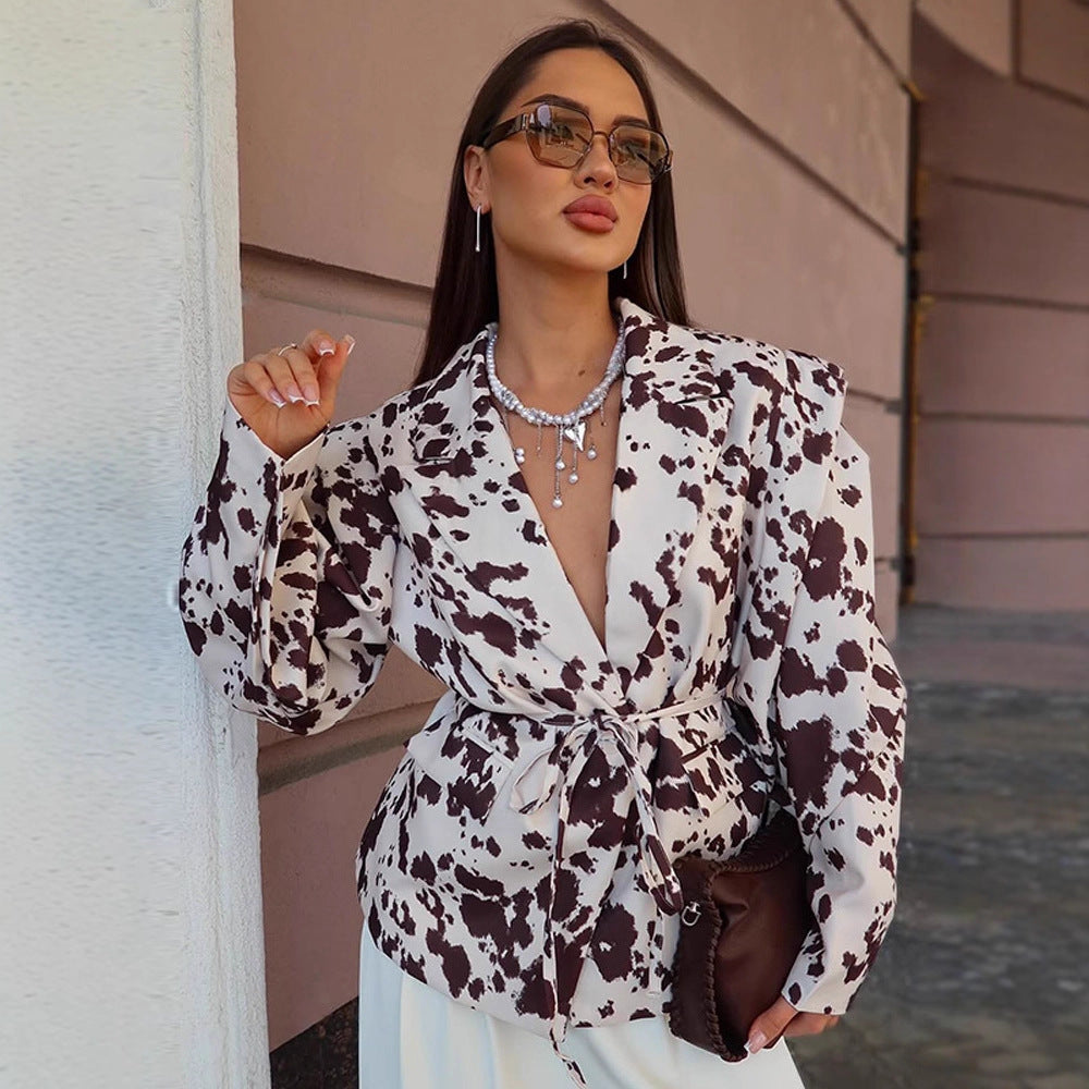 Oplev damernes elegante blazerjakke med knudeåbning og iøjnefaldende dyremønster fra Stilla. Denne fashionable blazerjakke kombinerer komfort med et stilfuldt design, perfekt til enhver lejlighed.