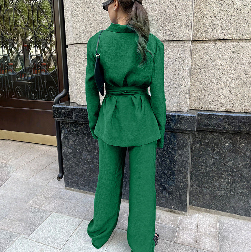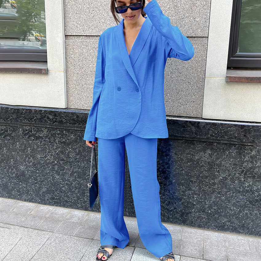 Udforsk vores damesæt, der kombinerer moderne design med maksimal komfort. Dette elegante sæt består af en stilfuld blazerjakke og matchende, løstsiddende bukser, ideelt til kontor, fritid eller særlige anledninger.