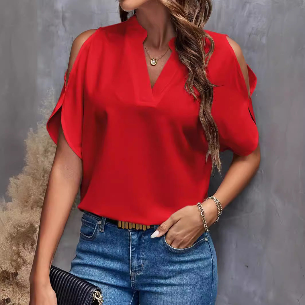 Opdag den elegante dameskjorte med korte ærmer og dyb V-hals fra Stilla, som er perfekt til stilbevidste kvinder. Denne skjorte kombinerer moderne design med klassisk chik og tilbyder en komfortabel pasform, der er ideel til forskellige lejligheder.