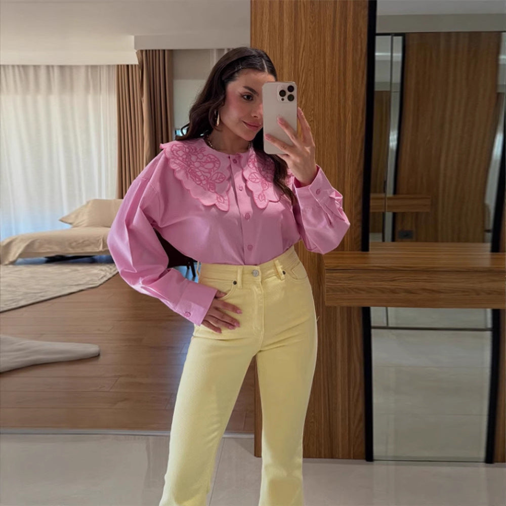 Opdag den eksklusive damebluse fra Stilla, der forener stilfuldt design med overfladestruktur. Denne bluse er præget af sin unikke, blomsterkrave og er et absolut must-have i enhver garderobe.