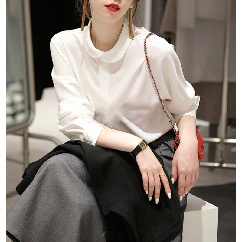 Opdag vores dames elegante blouse med klassisk Peter Pan-krave, der er perfekt til enhver lejlighed. Denne blouse forener tidløst design med moderne komfort og kan kombineres på mange måder.