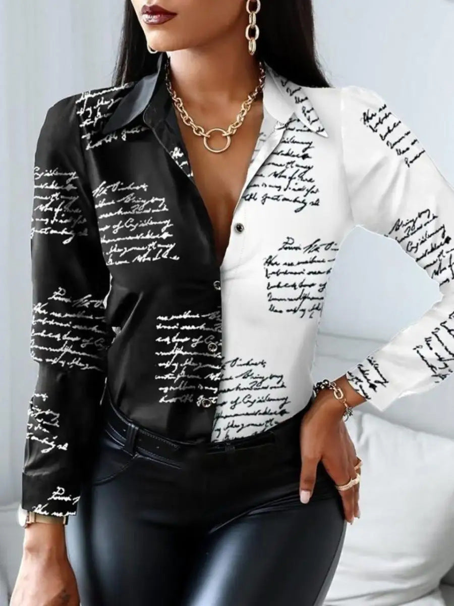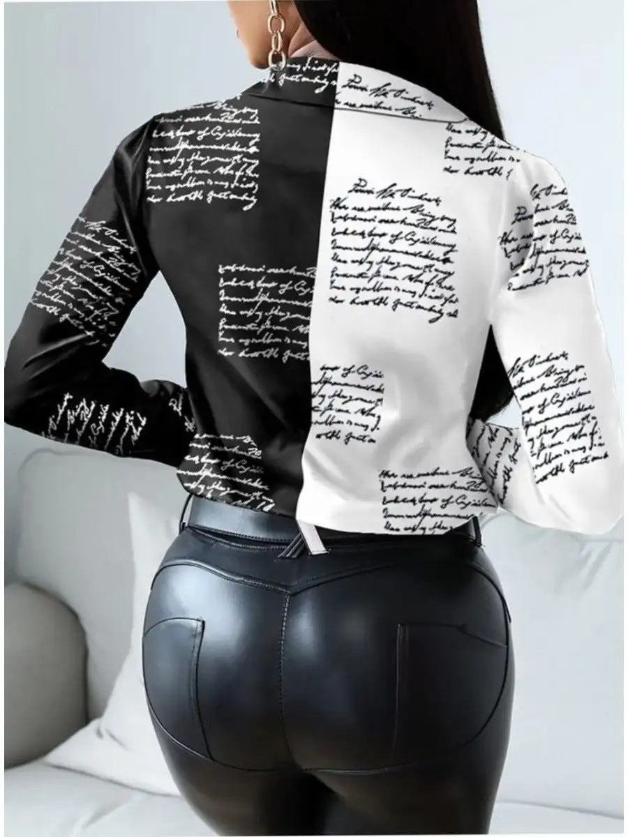 Opdag den perfekte kombination af elegance og komfort med denne stylish bluse fra Stilla. Dette højkvalitets beklædningsgenstand imponerer med sit unikke, kontrasterende skriftmønster, som både er moderne og tidløst. Den taljerede pasform sikrer, at du altid ser godt ud, uanset om du er på kontoret eller i fritiden.