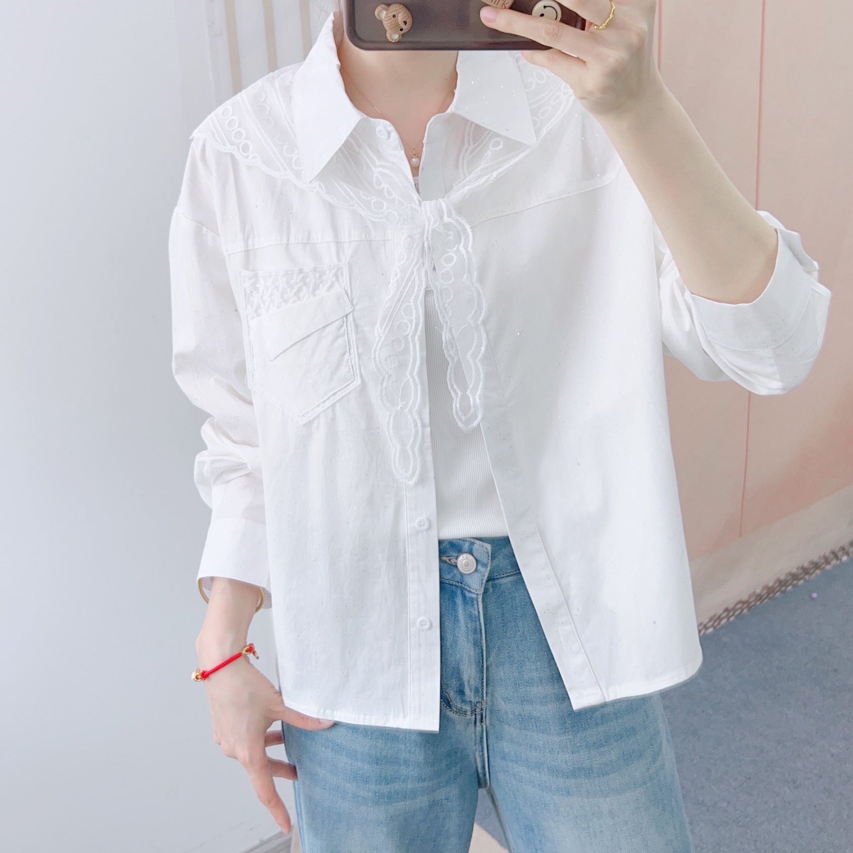 Blusen er lavet af et højkvalitets, let materiale, der tilbyder en behagelig bærekomfort. Den raffinerede flæsesøm og den detaljerede brodering på forsiden giver et elegant look, mens den klassiske kraveform afrunder det samlede udseende harmonisk.