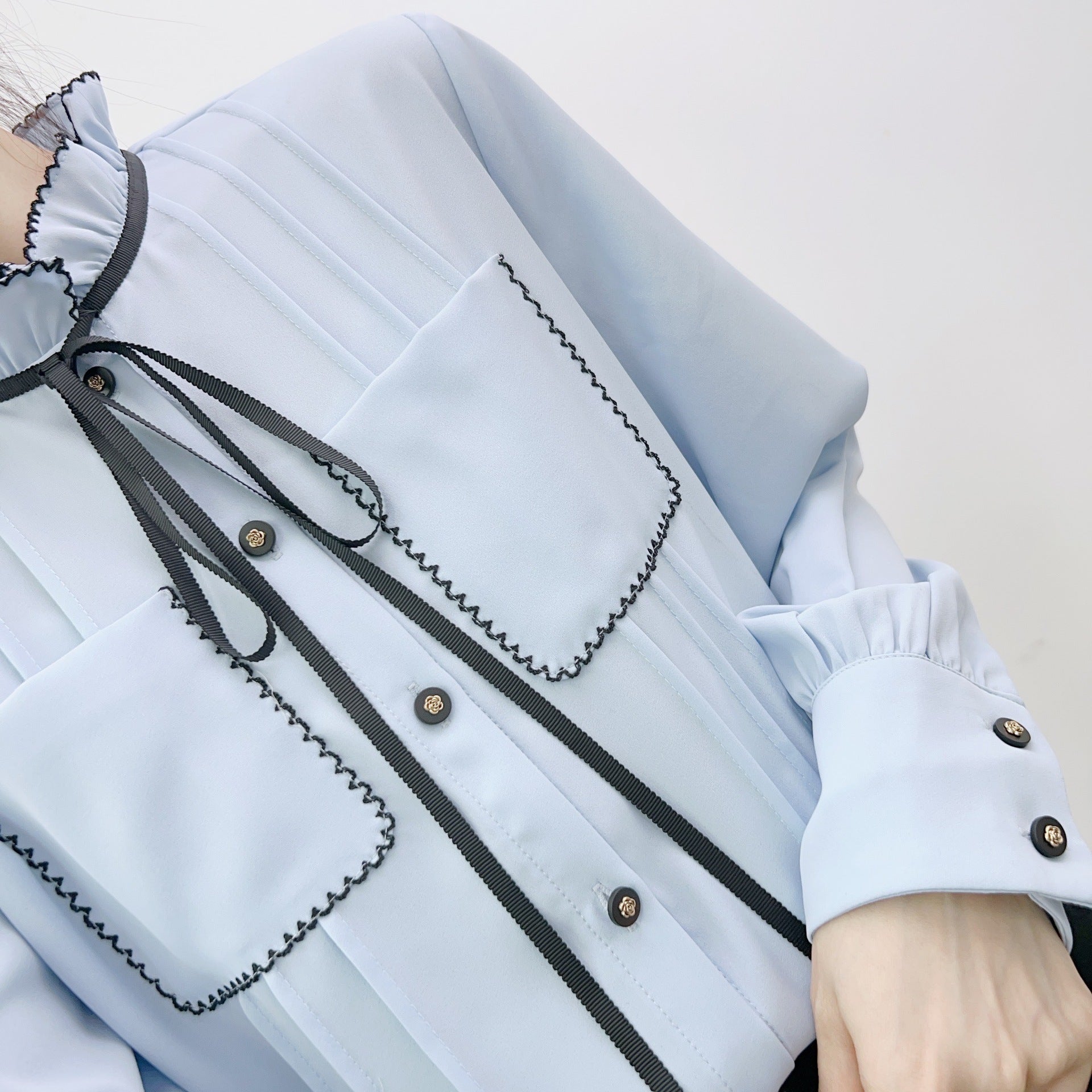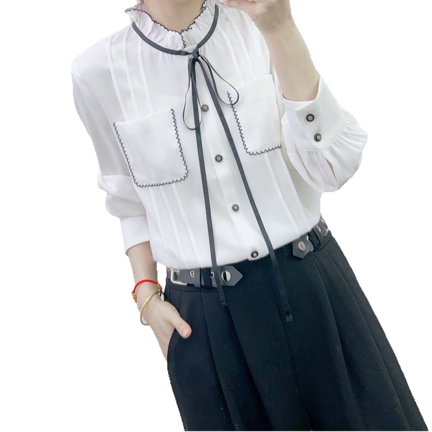 Opdag den elegante dameskjorte med unikke flæsedetaljer og stilfuldt bindebånd fra Stilla. Dette stilfulde overdel kombinerer komfort og design for at give dig en alsidig og attraktiv outfitmulighed.