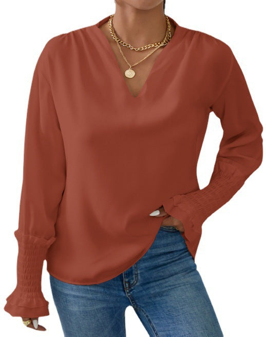 Denne eksklusive dametop kombinerer elegance og komfort til enhver lejlighed. Det fine stof sikrer en behagelig pasform, mens ruffle-detaljerne ved ærmerne sætter et stilfuldt præg.
