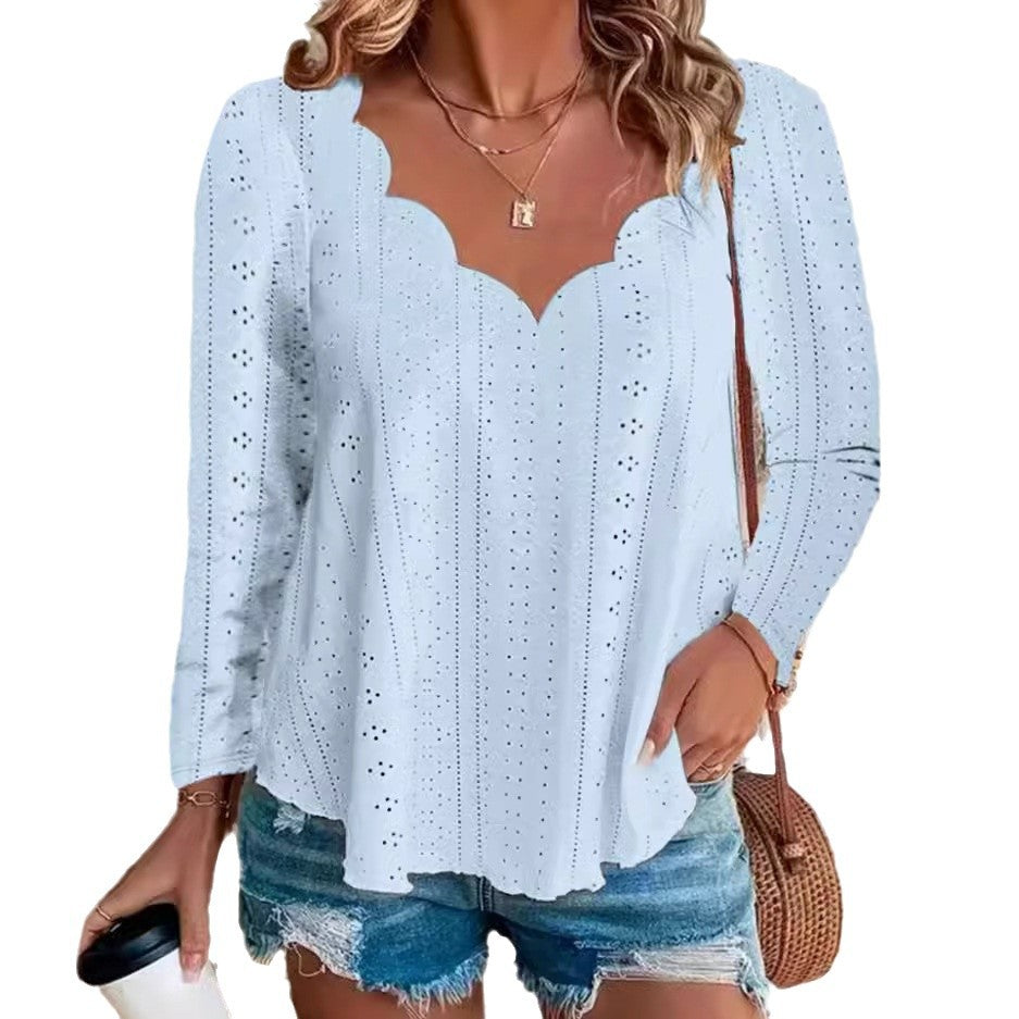 Opdag den fantastiske Dame Elegant Bluse med Skallop-Udskæring og fin Hulbroderi fra Stilla. Dette moderigtige overdel forener stil med komfort og er ideelt til forskellige lejligheder, fra afslappede møder til elegante begivenheder.