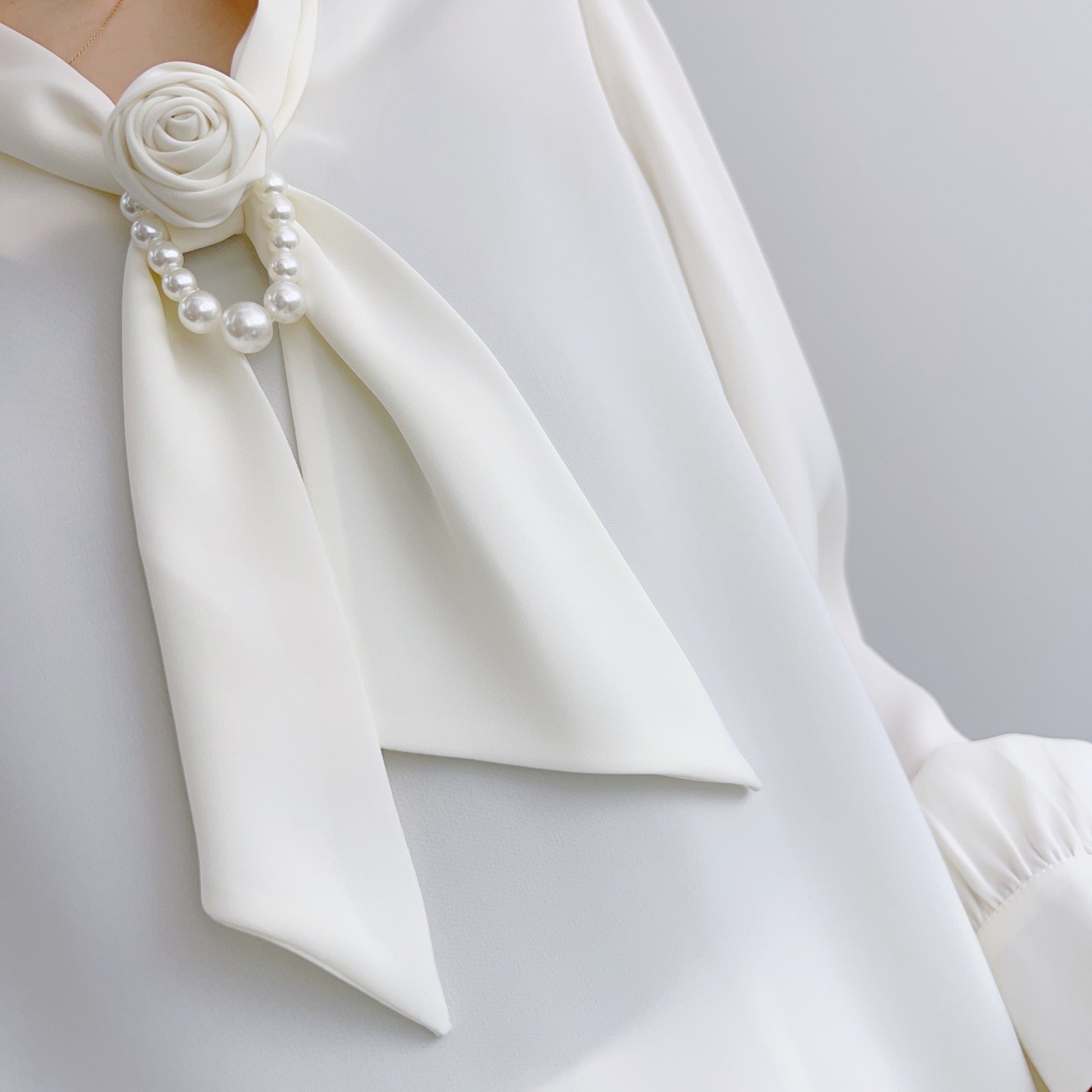Vores dames elegante bluse med sløjfedetalje og perleaccessory fra Stilla er det perfekte valg til enhver festlig begivenhed eller kontoret. Fremstillet af højkvalitets, let materiale er denne bluse behagelig at have på og sikrer et stilfuldt look.