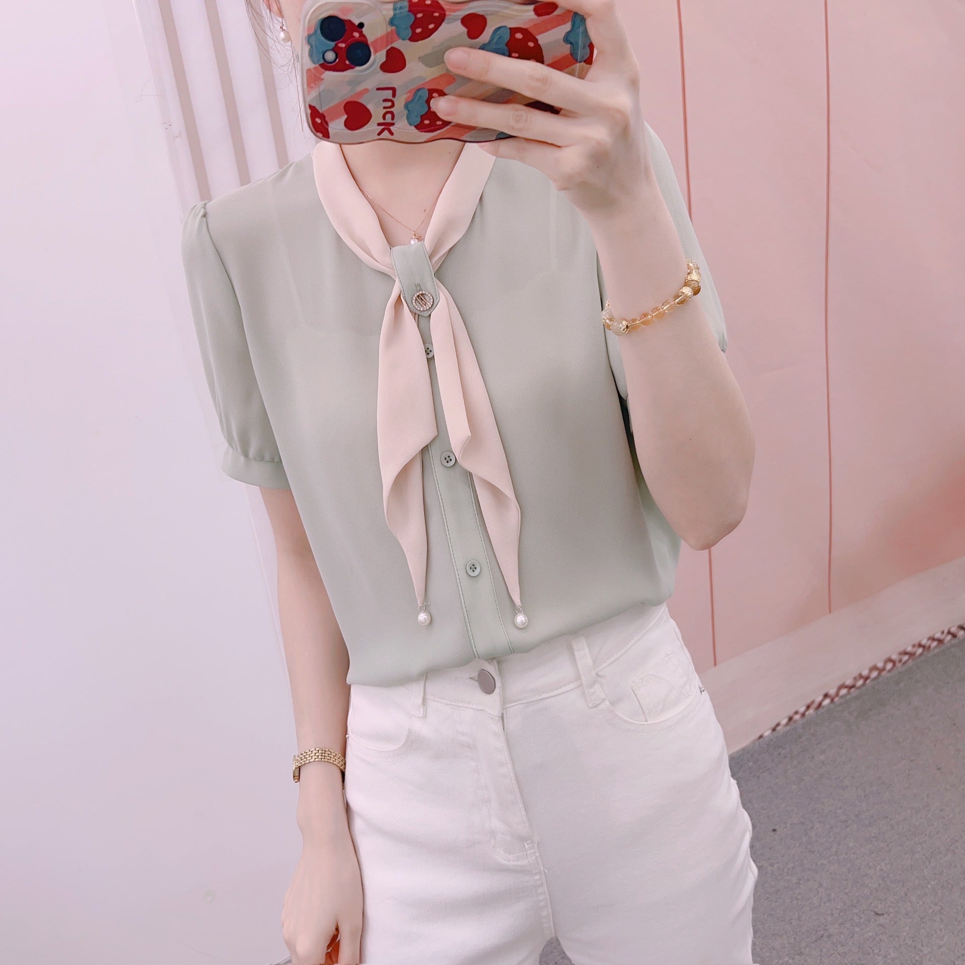Opdag den stilfulde dames elegante bluse med sløjfe krave og perle-detaljer fra Stilla. Denne moderigtige bluse forener elegant design med alsidig bærbarhed og er den perfekte følgesvend til ethvert outfit.