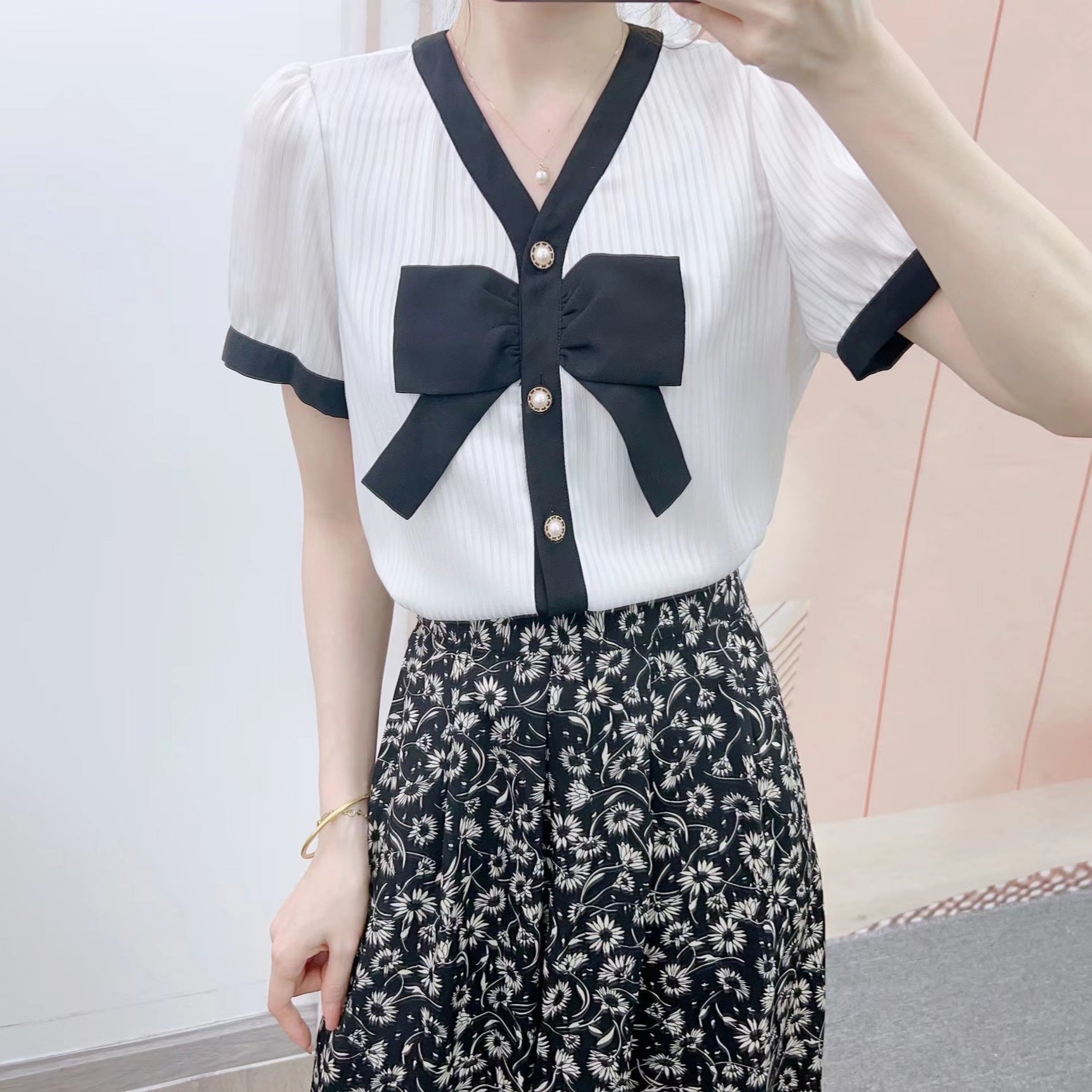 Oplev vores imponerende ensemble bestående af en stilfuld bluse og en matchende nederdel, perfekt til elegante anledninger og hverdagen. Dette outfit forener komfort og stil for at give dig en selvsikker bæreoplevelse.