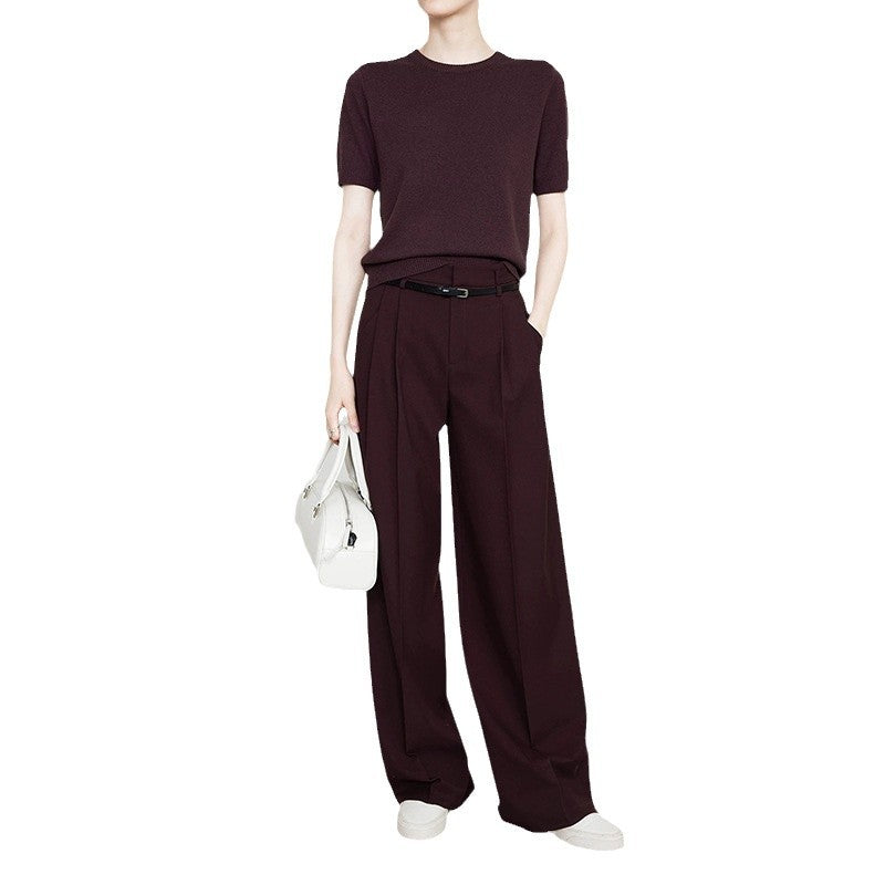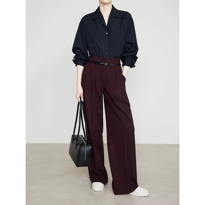 Oplev den perfekte kombination af stil og komfort med dette elegante sæt fra Stilla. Den taljerede bluse med klassisk krave og lange ærmer udstråler tidløs elegance, mens de bredde bukser med et raffineret bælte skaber en flatterende silhuet.