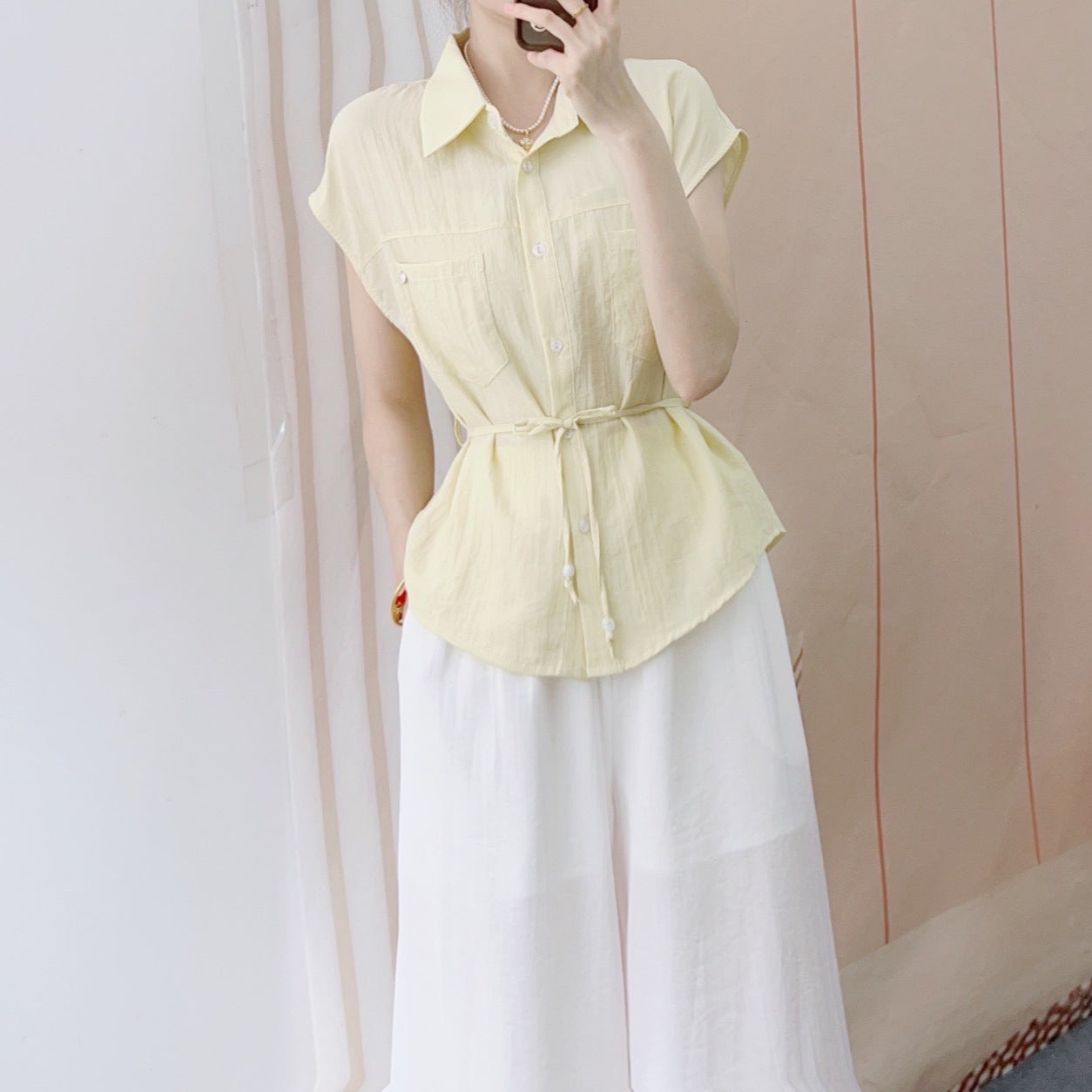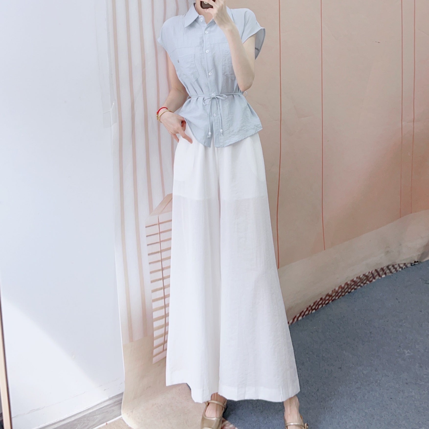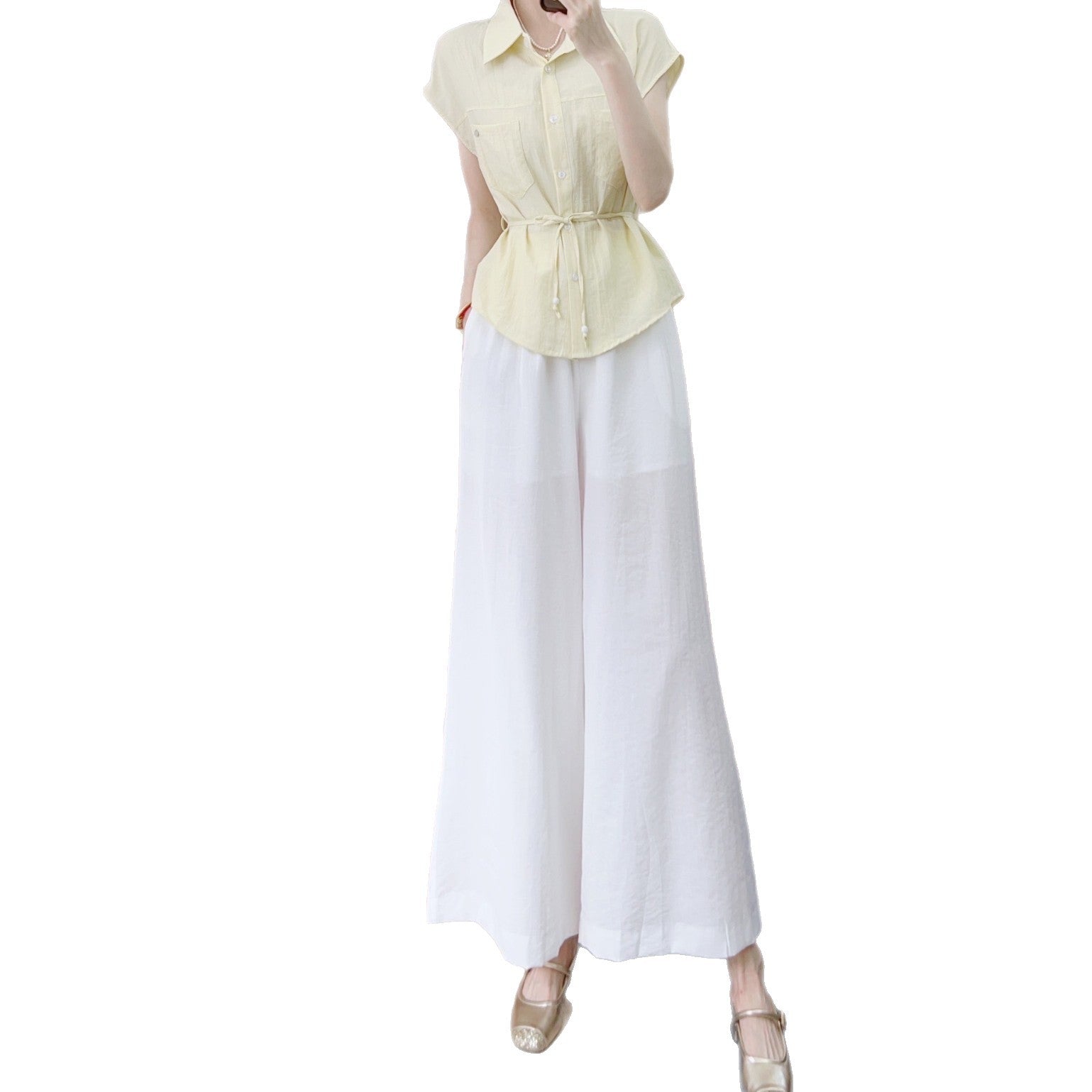 Opdag det perfekte sommeroutfit med vores elegante bluse og de lette, brede bukser. Dette sæt er ideelt til stilbevidste kvinder, der værdsætter komfort og elegance.