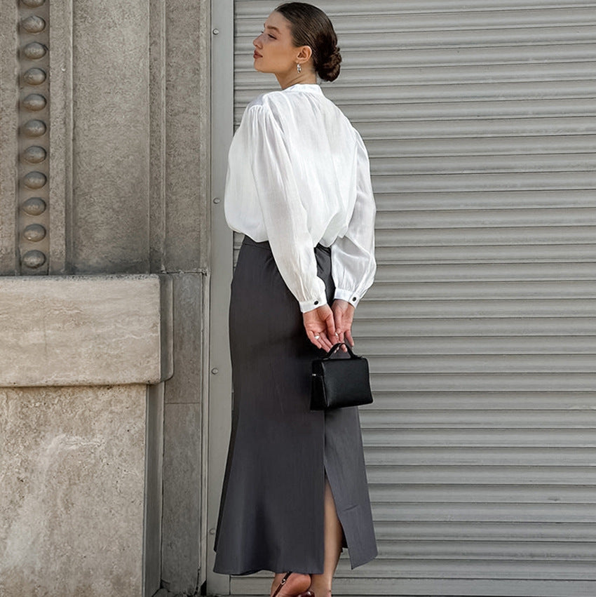 Opdag vores elegante blyantskørt, som fascinerer med sin høje talje og svingende sleb. Dette skørt er den perfekte tilføjelse til dit business- eller aftenoutfit og giver en imponerende silhuet.