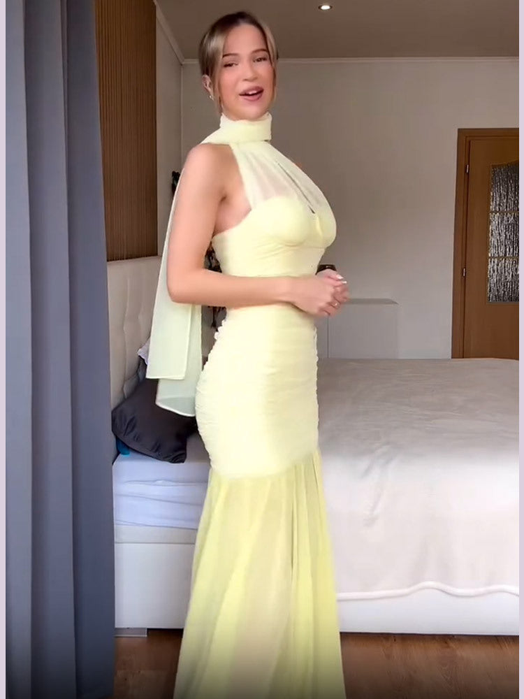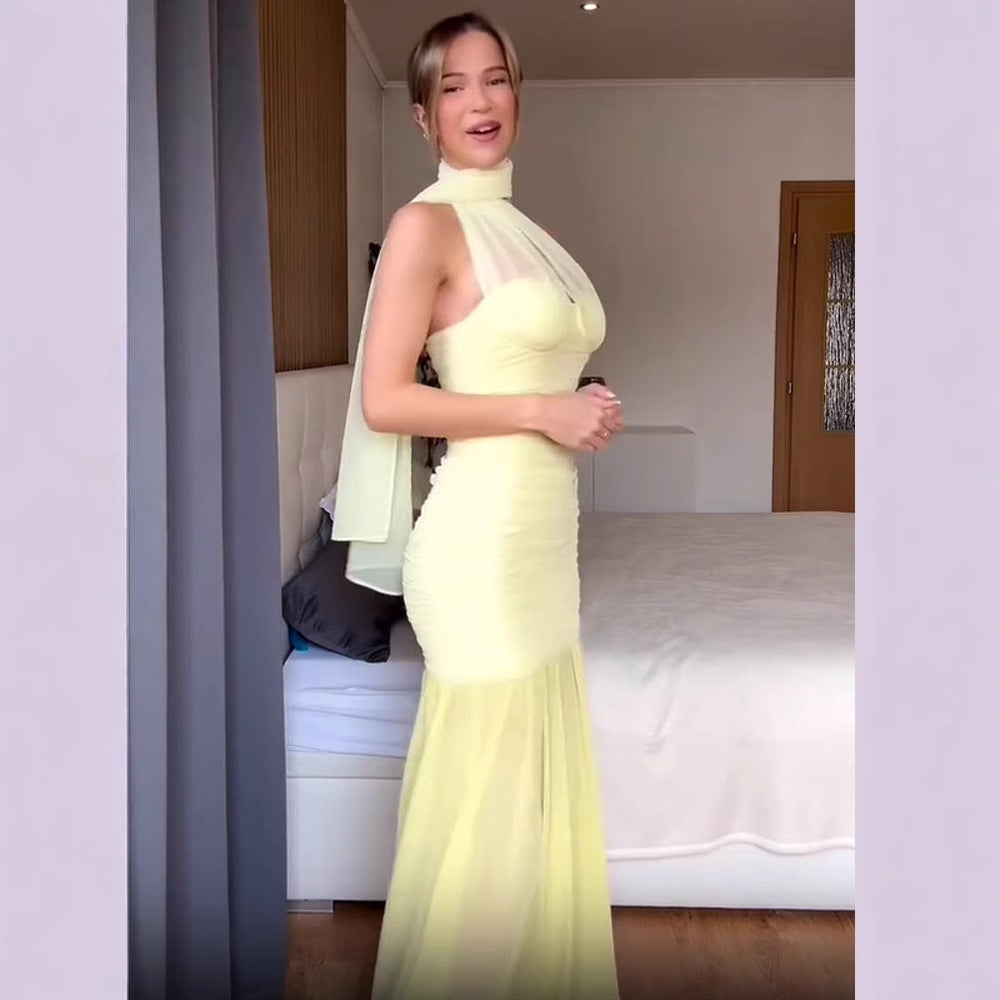 Opdag den betagende Elegante Bryllups Kjole med gennemsigtige elementer fra Stilla, der repræsenterer den perfekte blanding af stil og elegance. Denne kjole er ideel til bryllupper, særlige anledninger eller glamourøse fester.