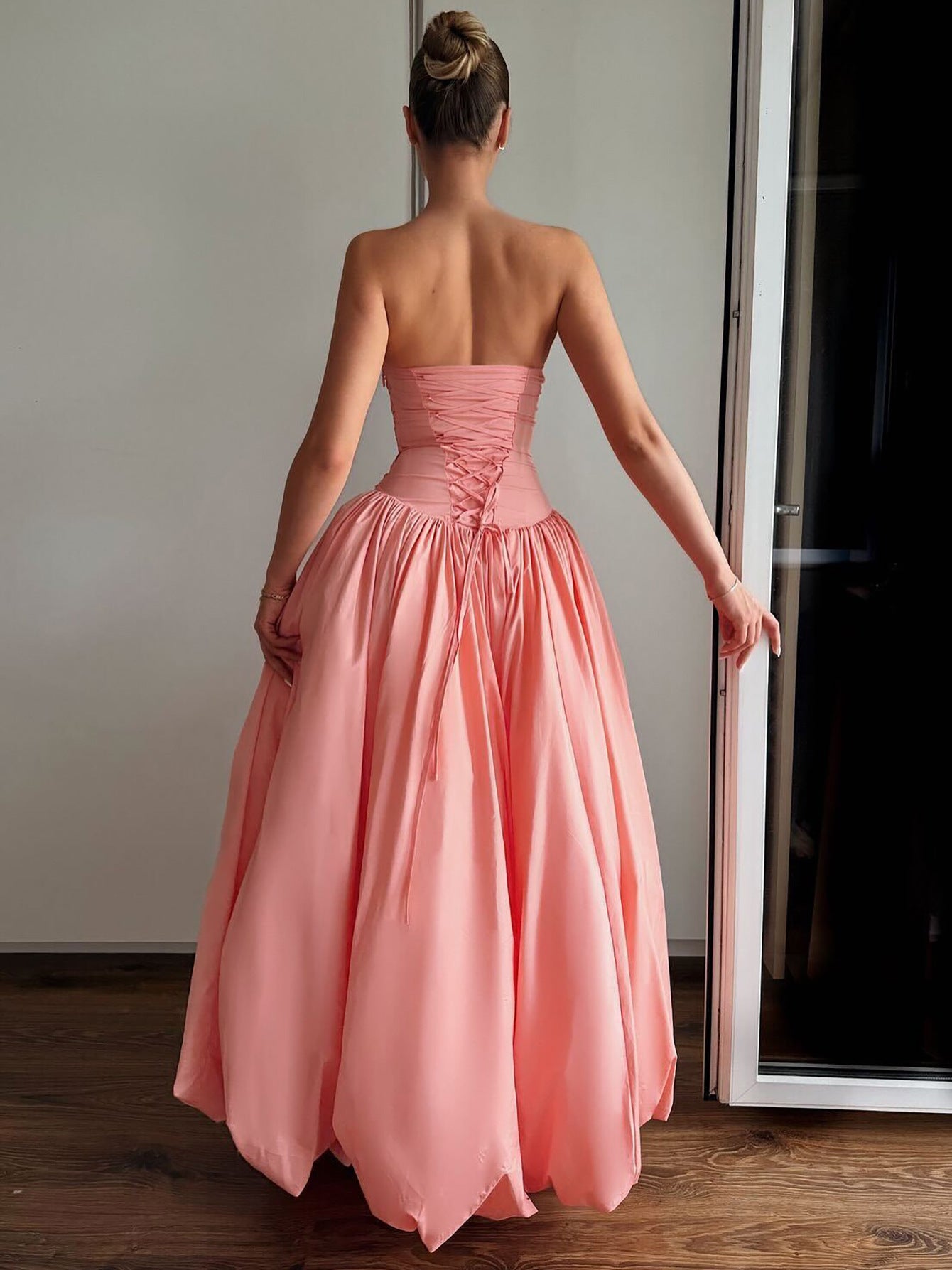 Oplev vores Elegante Brudekjole, der er perfekt designet til særlige lejligheder. Denne kjole kombinerer tidløs elegance med moderne detaljer. Den strapless skæring fremhæver skuldrene og dekolletèet, mens den voluminøse nederdel skaber et betagende look.
