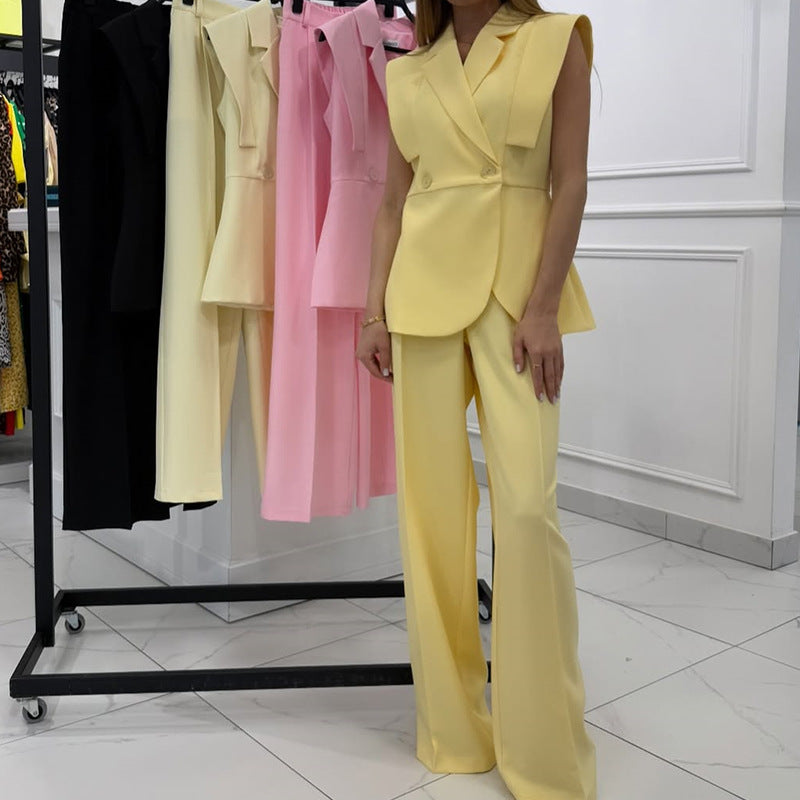 Oplev det stilfulde og alsidige dametøj Elegant Jumpsuit-sæt med figursyet blazer og løs pasform fra Stilla. Dette ensemble forener elegance og komfort og er perfekt til både forretnings- og festlige anledninger.