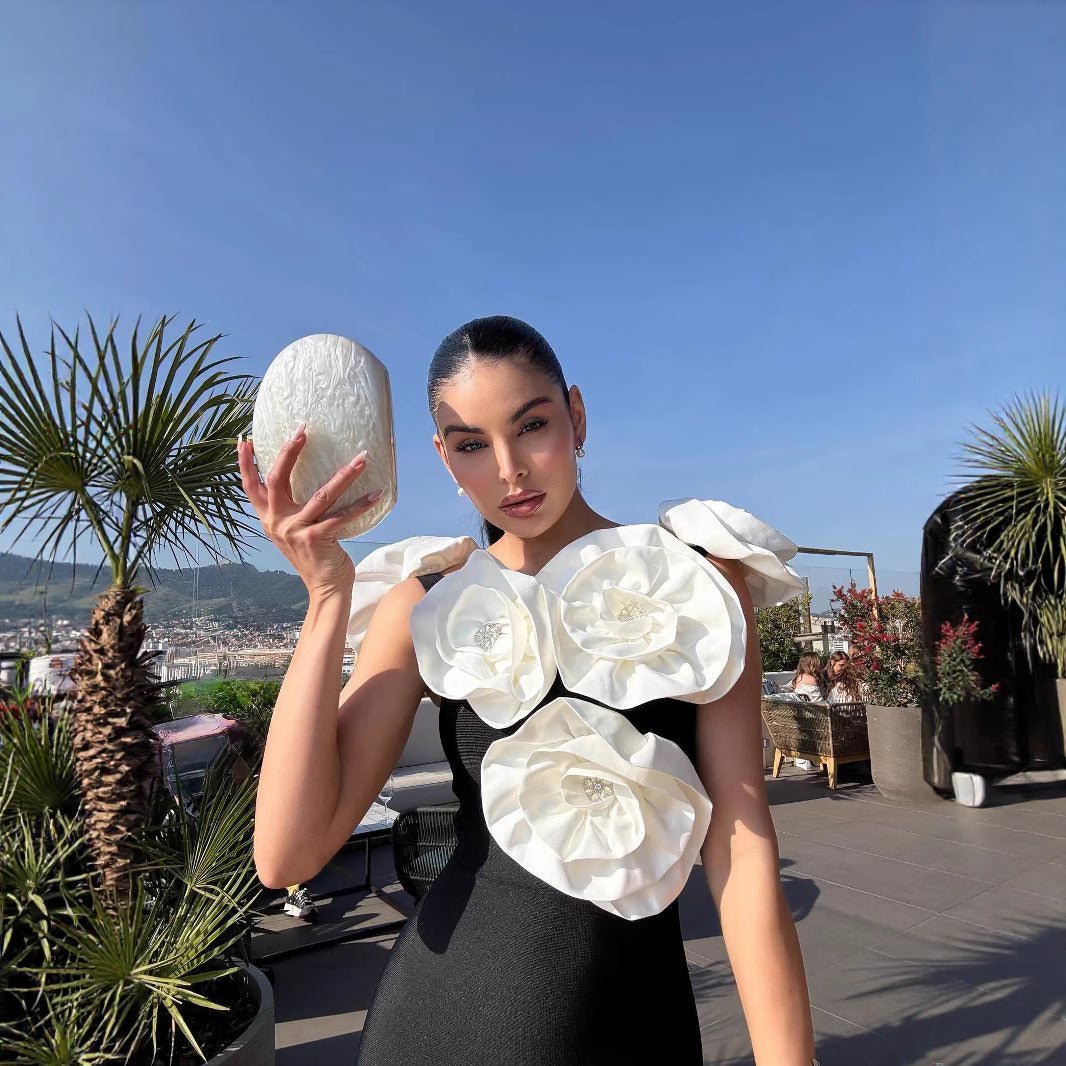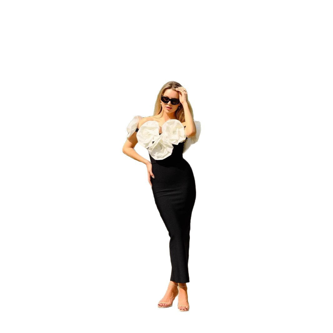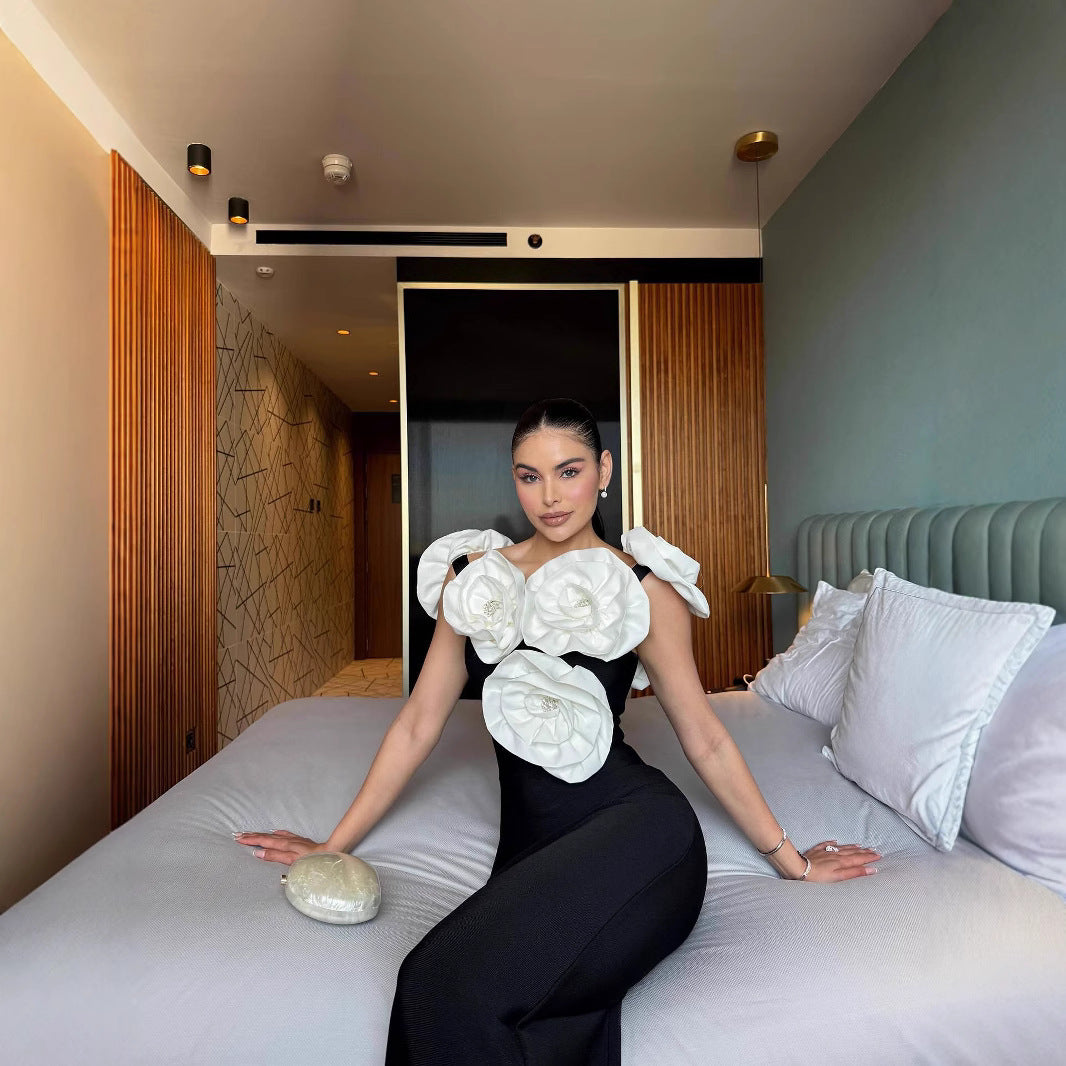 Oplev det perfekte samspil mellem elegance og stil med vores kvinders elegante cocktailkjole. Denne betagende kjole imponerer med sine voluminøse blomsterdetaljer, der giver dit look et romantisk præg.