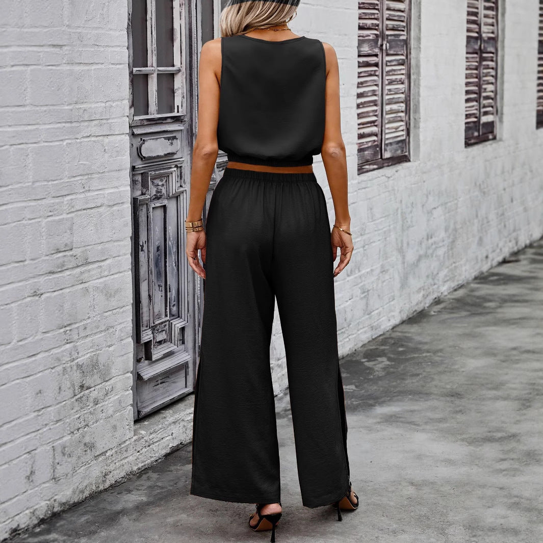 Opdag det stilfulde og alsidige dametøj sæt med elegant crop-top og brede bukser fra Stilla, der er perfekt til afslappede sommeraftener og modebegivenheder. Dette sæt kombinerer chic elegance med komfortabel pasform.
