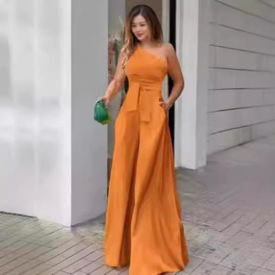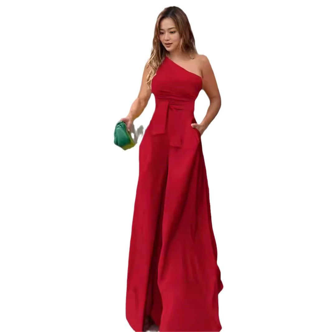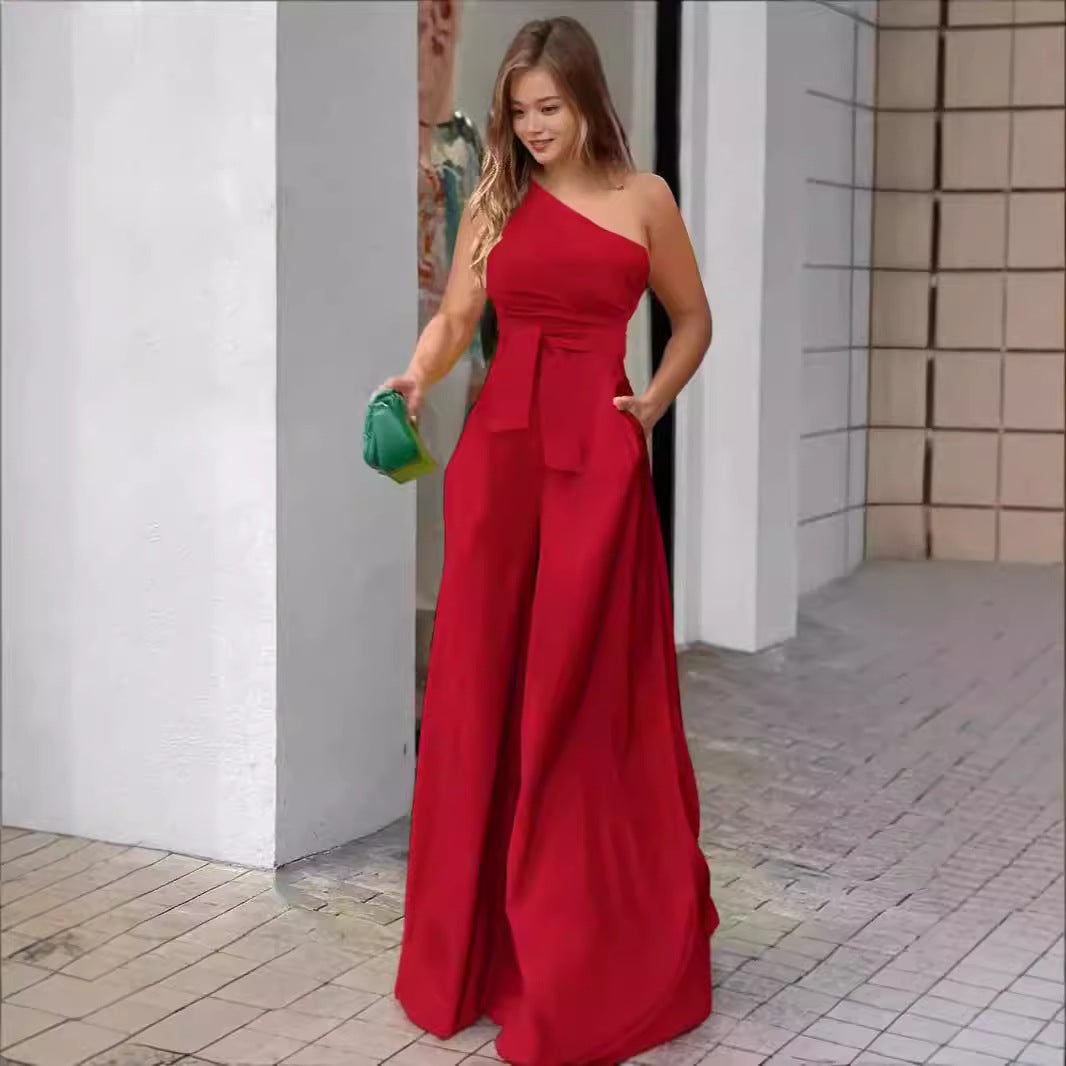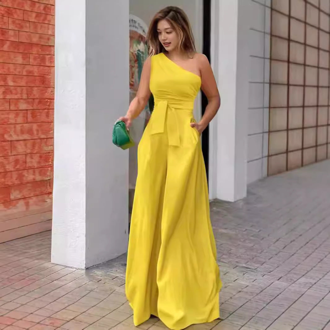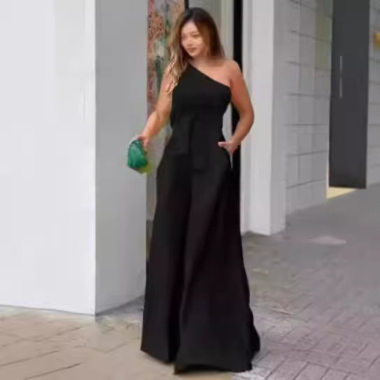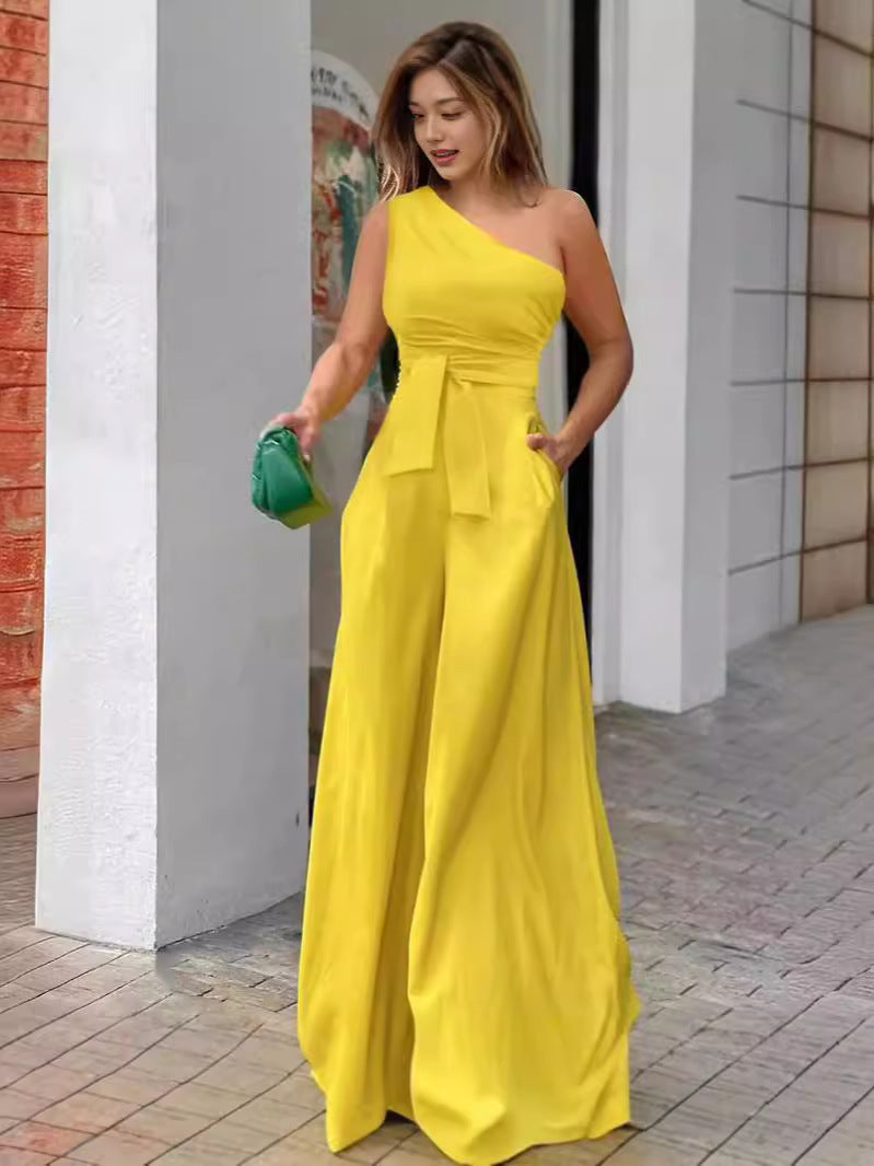 Giv dit look et strejf af elegance med denne stilfulde og komfortable jumpsuit fra Stilla. Det asymmetrisk stropdesign skaber en feminin silhuet og gør det til et ideelt outfit til særlige anledninger eller sommerbegivenheder.