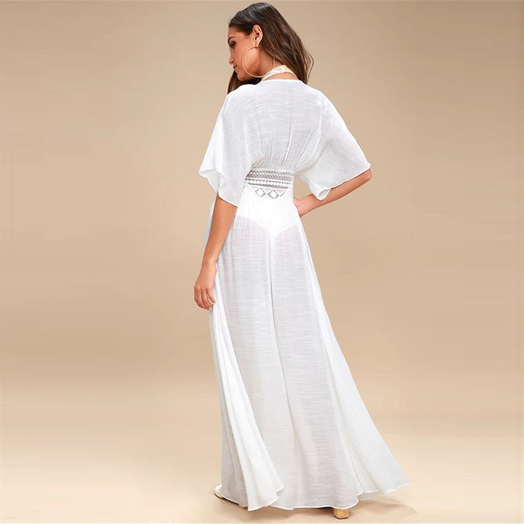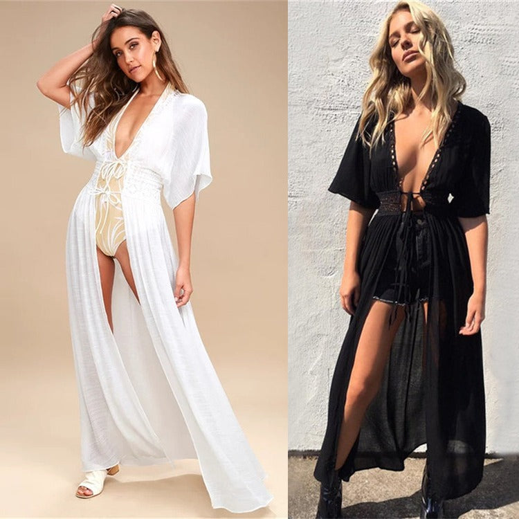 Udforsk vores kvindelige elegante transparente strandoverdel med kunstneriske hæklede detaljer fra Stilla, der er perfekt til afslappede dage på stranden eller ved poolen. Denne stilfulde overdel giver ikke kun et moderigtigt look, men også komfort og lethed.