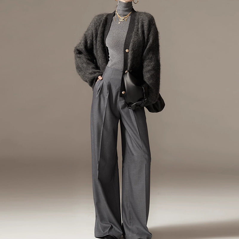 Opdag den perfekte kombination af komfort og elegance med vores elegante højhalsbukser. Disse bukser imponerer med deres brede snit, der skaber en chic silhuet og kan kombineres alsidigt. Det højkvalitets materiale sikrer en behagelig bæreoplevelse og en holdbar kvalitet.