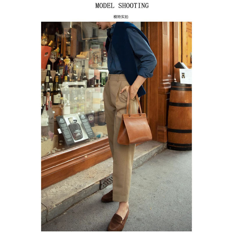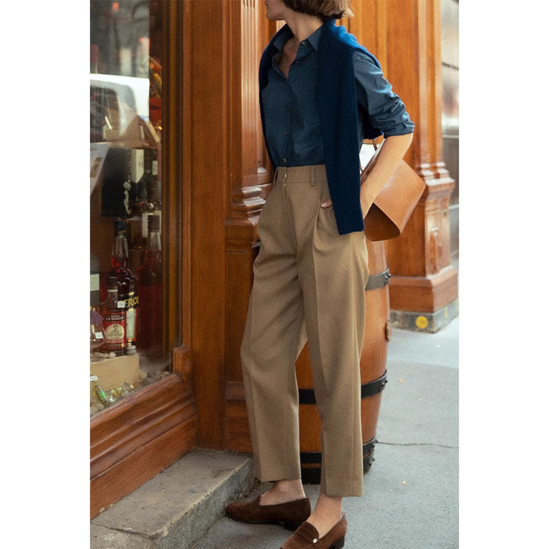 Disse højkvalitets, bredt skårne højtaljede bukser forener komfort og stil. De er lavet af et holdbart stof, der er ideelt til både hverdag og særlige anledninger.