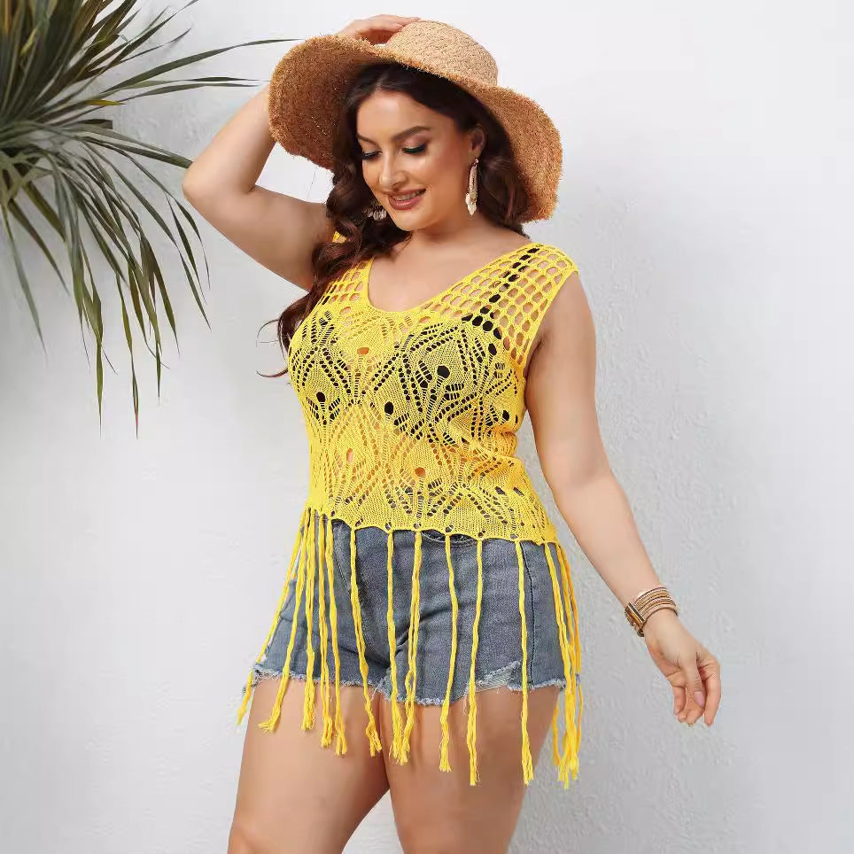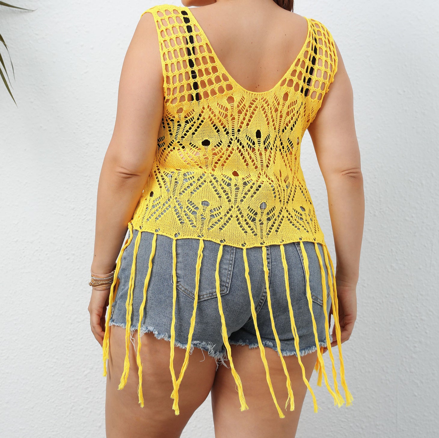 Opdag vores elegante hæklede strandovertræk til kvinder med frynset detaljer fra Stilla, perfekt til en stilfuld fremtoning ved stranden eller poolen. Dette overtræk kombinerer en afslappet stil med et strejf af elegance og er ideelt til varmt vejr.