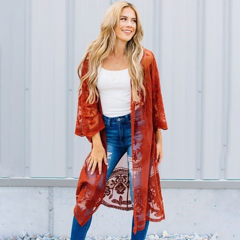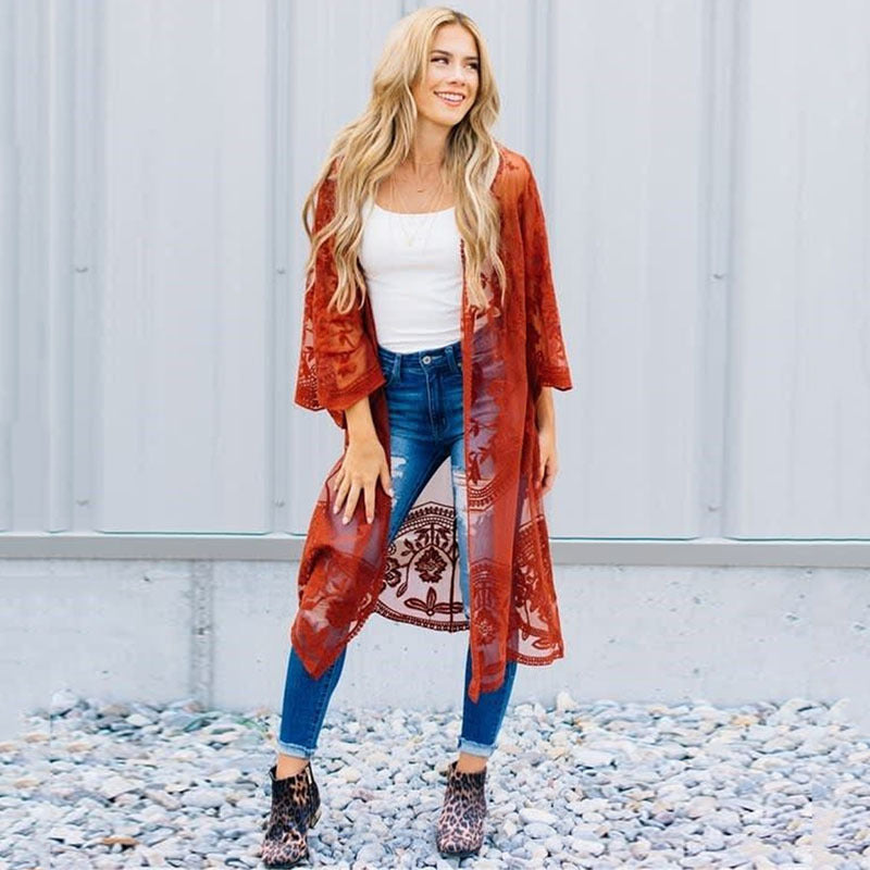 Opdag den betagende elegante hæklede kimono fra Stilla, der beriger enhver sommergarderobe. Denne eksklusive kreation imponerer med sine filigrane blomsterdetaljer og tilbyder både stil og komfort.