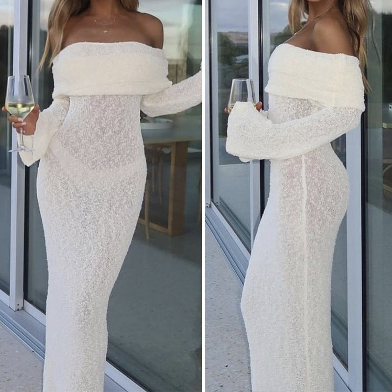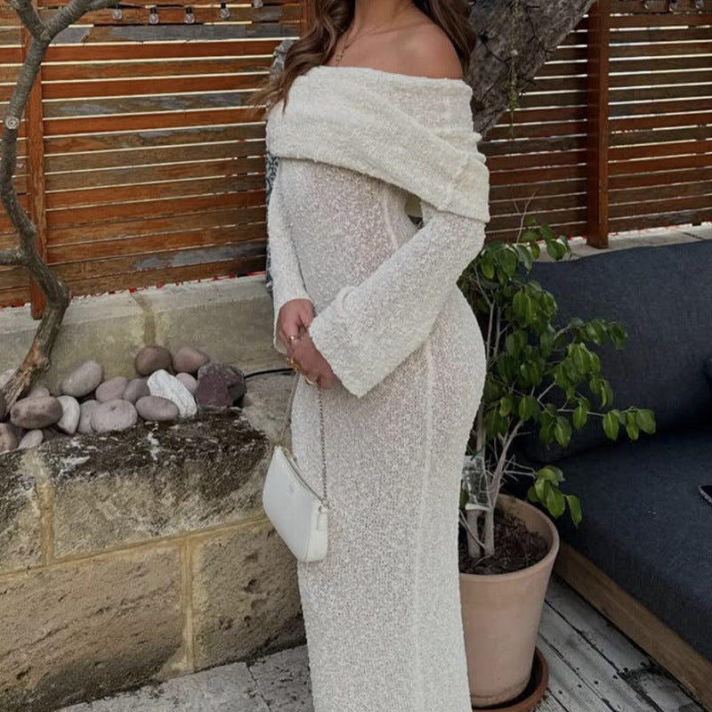 Dette smukke dame maxikjole fra Stilla er den perfekte ledsager til særlige anledninger. Med en raffineret åben skulder og lange, charmerende ærmer udstråler denne kjole en tiltalende elegance, der fanger alles opmærksomhed.